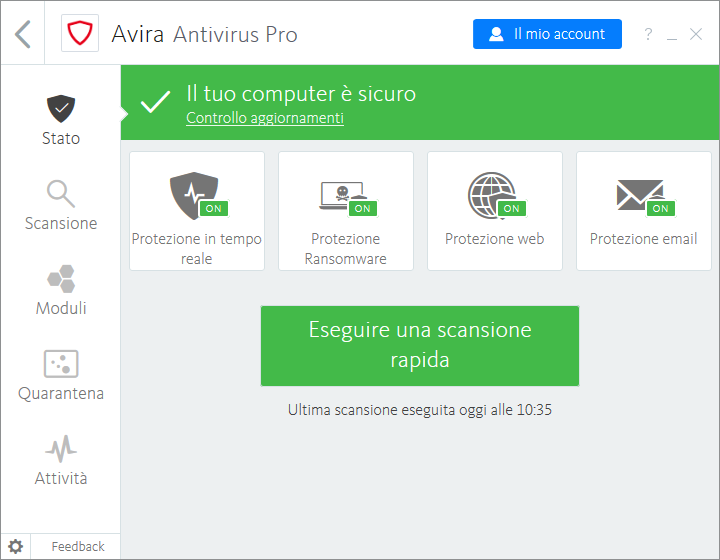 Avira Antivirus 2019 è disponibile, come accennato in precedenza, sia in versione Free che in versione Pro. Quest’ultima, al prezzo di 9,95 euro al mese per 5 dispositivi o 12,95 euro al mese per un numero illimitati di dispositivi, offre alcune funzionalità aggiuntive di assoluto valore.