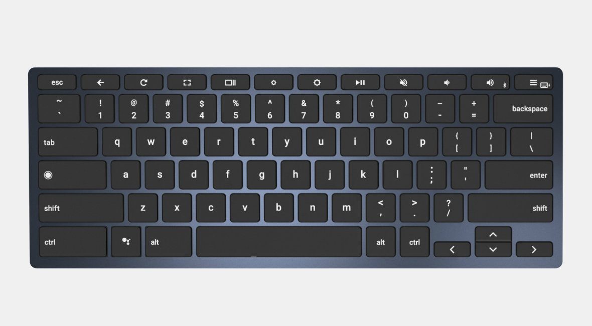 Abbinata al colore Midnight Blue di Pixel Slate, la tastiera è dotata di tasti funzione Chrome OS dedicati con pulsante indietro, aggiornamento, schermo intero e multitasking.