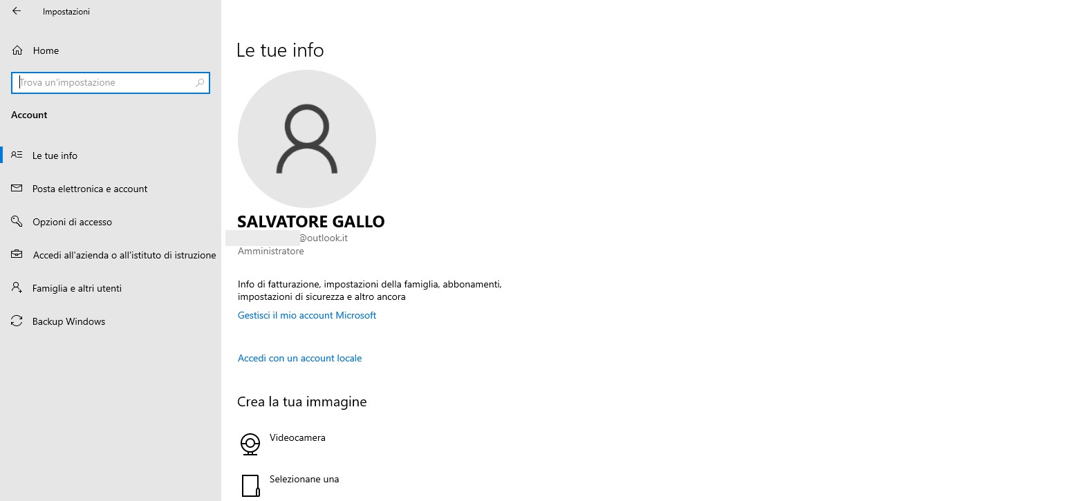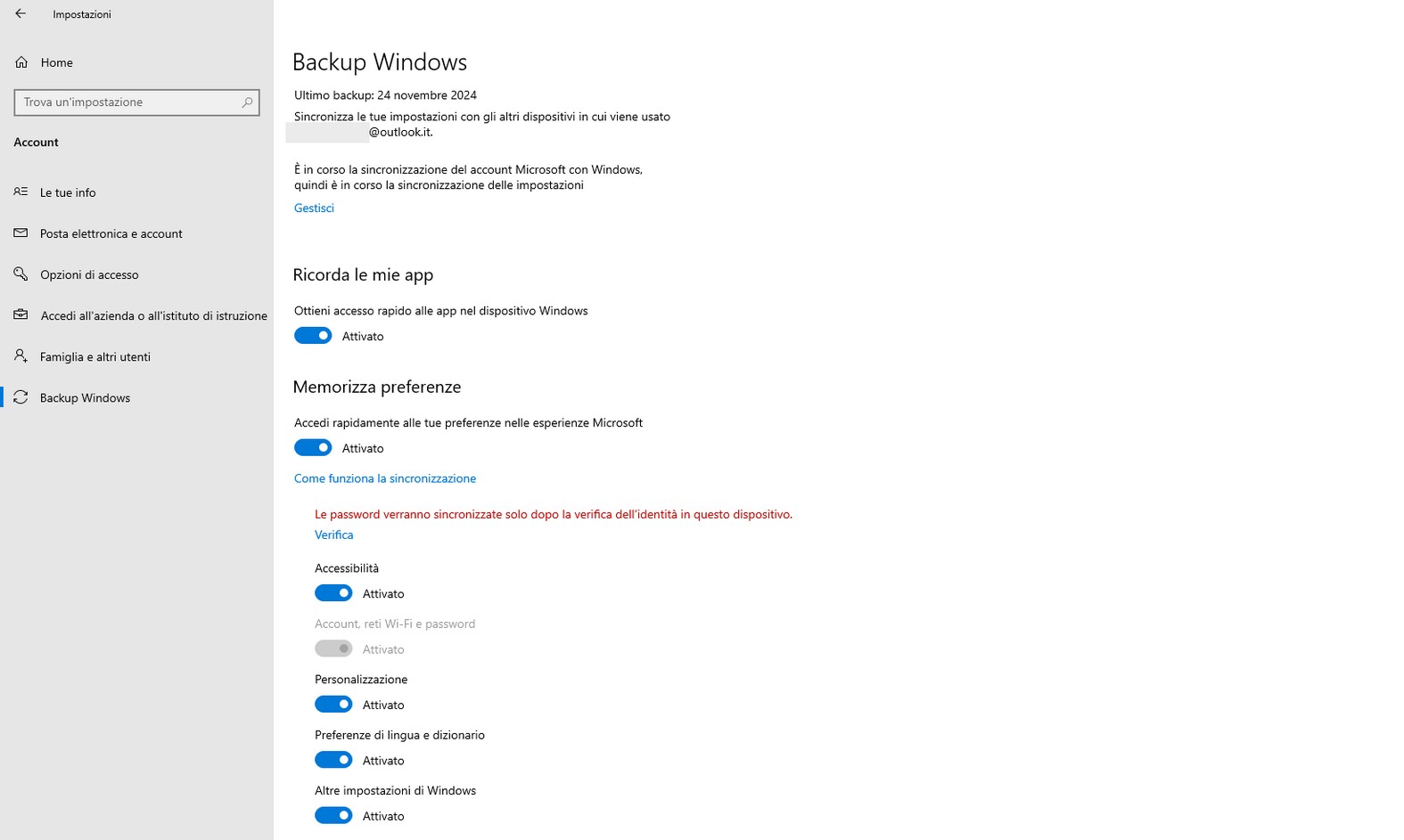 - Effettuare il backup di app e preferenze da Windows (Impostazioni/Account/Backup di Windows)