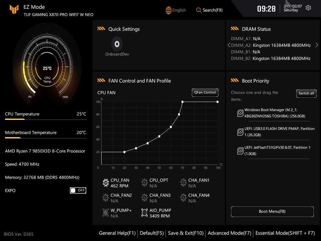 La TUF Gaming X870-Pro WiFi7 W NEO non si discosta da questo approccio e già a default risulta abbastanza veloce; per l’occasione ci abbiamo abbinato il nuovo AMD Ryzen 7 9850X3D, un chip che già di fabbrica arriva a 5,6 GHz, ma che grazie alle ottimizzazioni e impostazioni del PBO targate ASUS riesce a spremere ulteriormente il chip AMD.