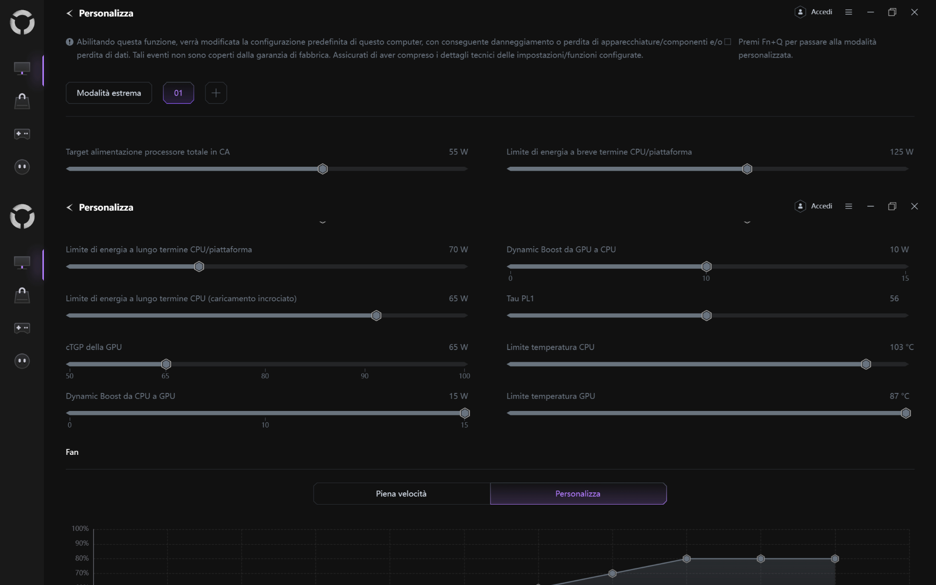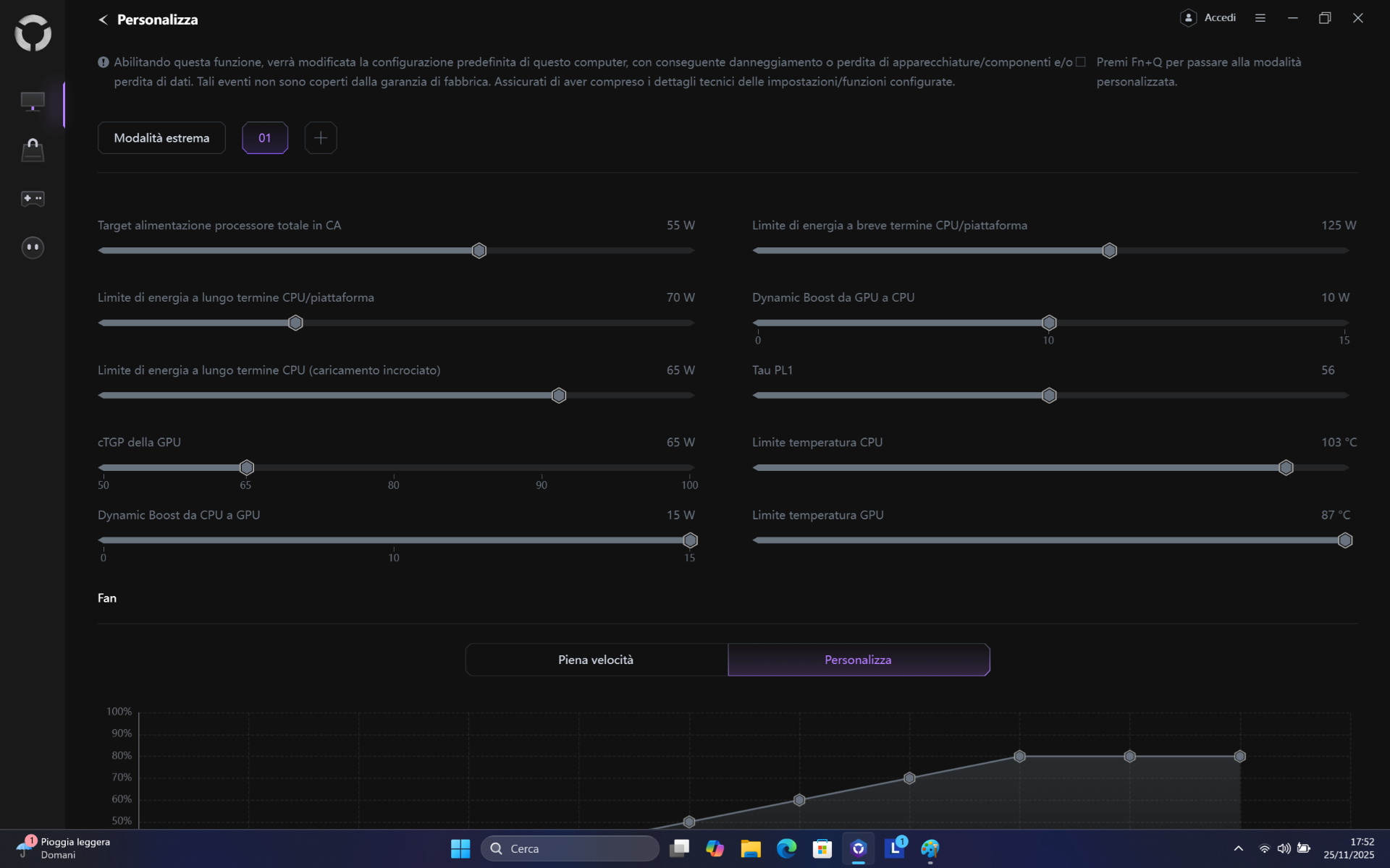 Passando alle prestazioni pure invece, al pari di altri notebook da gaming, queste sono direttamente influenzate dal profilo energetico scelto. Proprio per questo motivo ha senso condurre i benchmark in modalità Performance, mentre chi vuole tirare fuori tutto il potenziale del notebook dovrà mettere mano al profilo personalizzato.