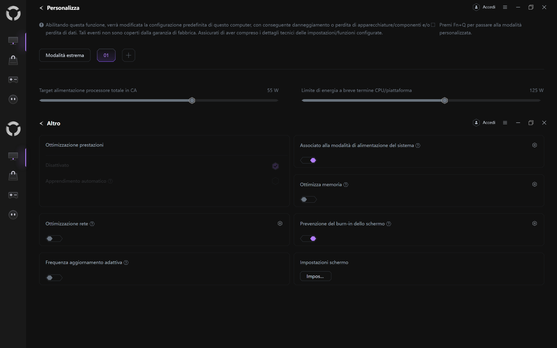 Al pari di altri notebook da gaming di questa fascia di prezzo, le funzionalità e le opzioni software pre-installate sono tante; non saremo noi a dire quanto e quali sono utili, ma in questo caso segnaliamo anche la gestione dell’audio 3D con l’AI (con tanto di profilo) nonché l’app X-Rite Color Assistant.