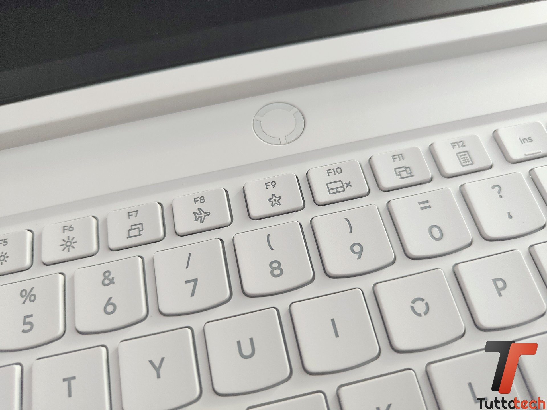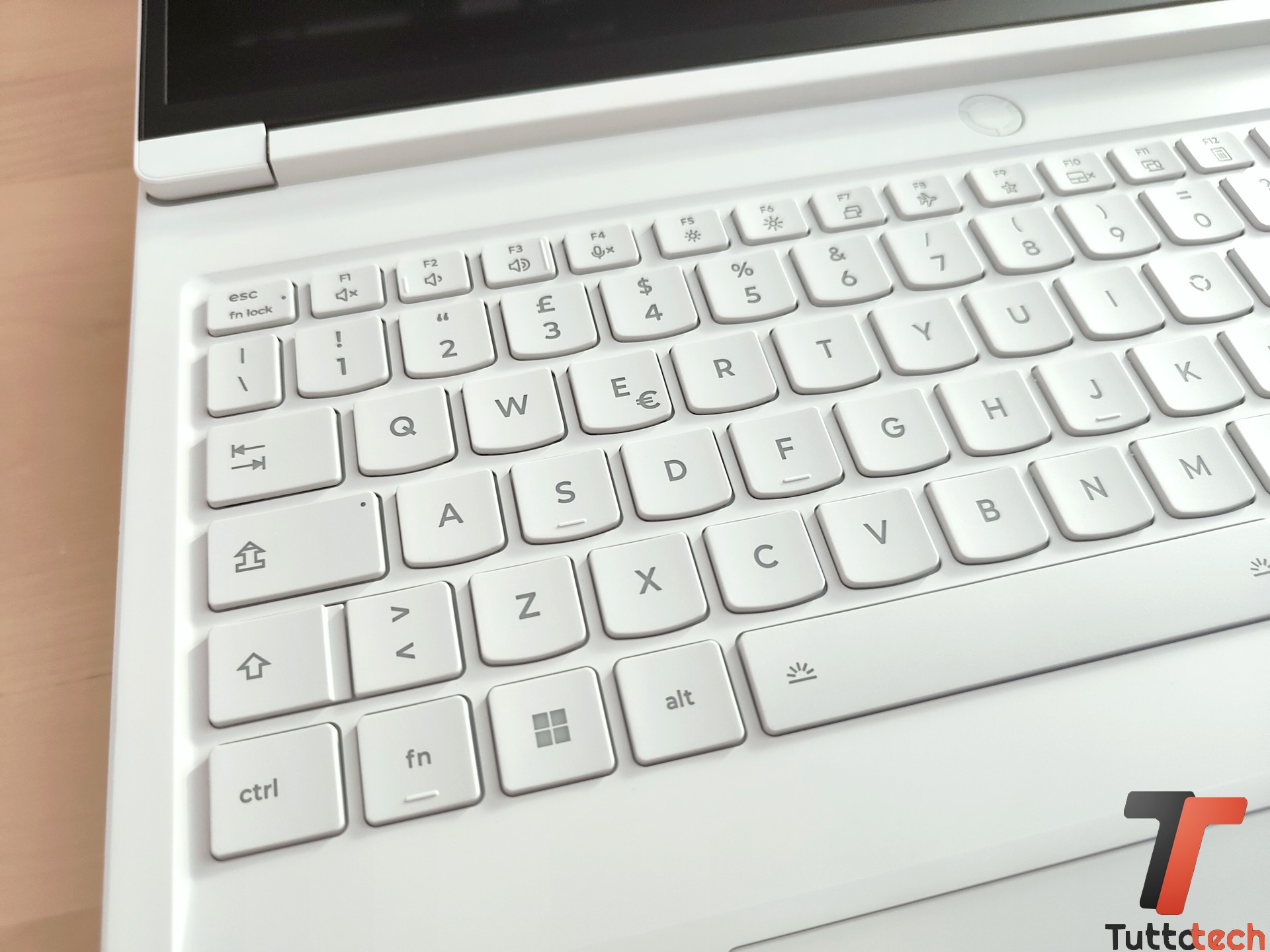 Rimanendo nelle vicinanze del display, con cornici sottili e ancorato tra l’altro a una cerniera molto solida che si apre fino a 170°, sulla parte superiore troviamo una webcam a infrarossi da 5MP con supporto per il riconoscimento biometrico (Windows Hello) e privacy shutter.