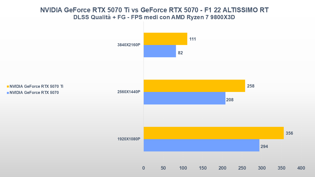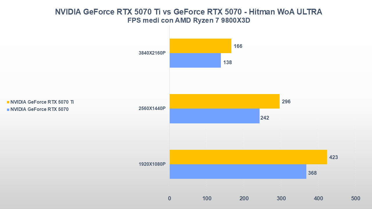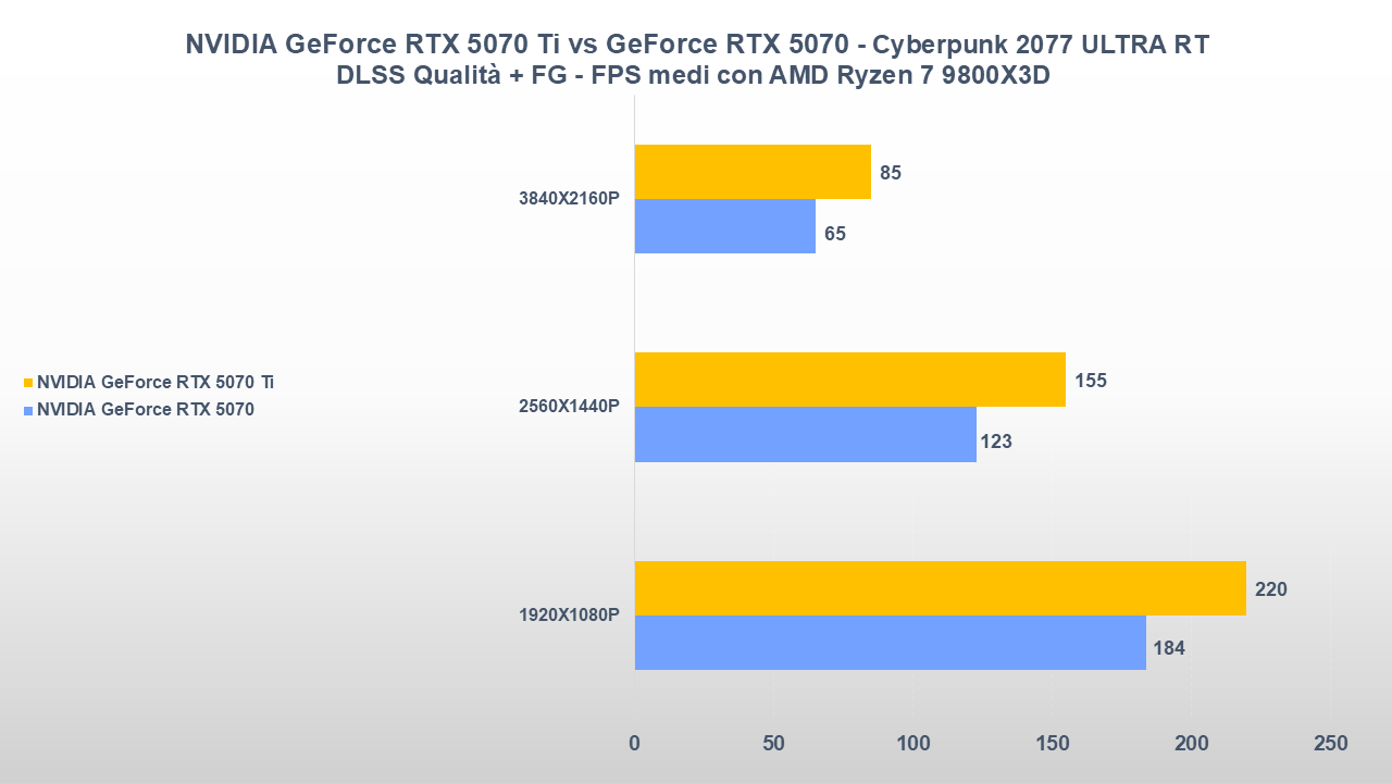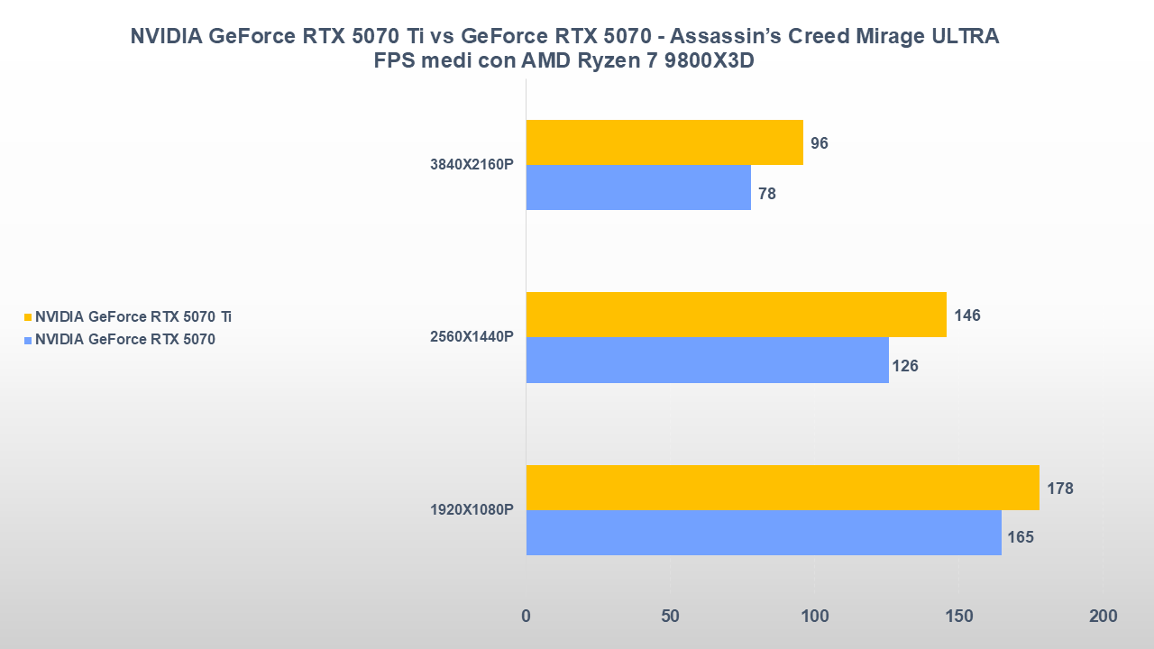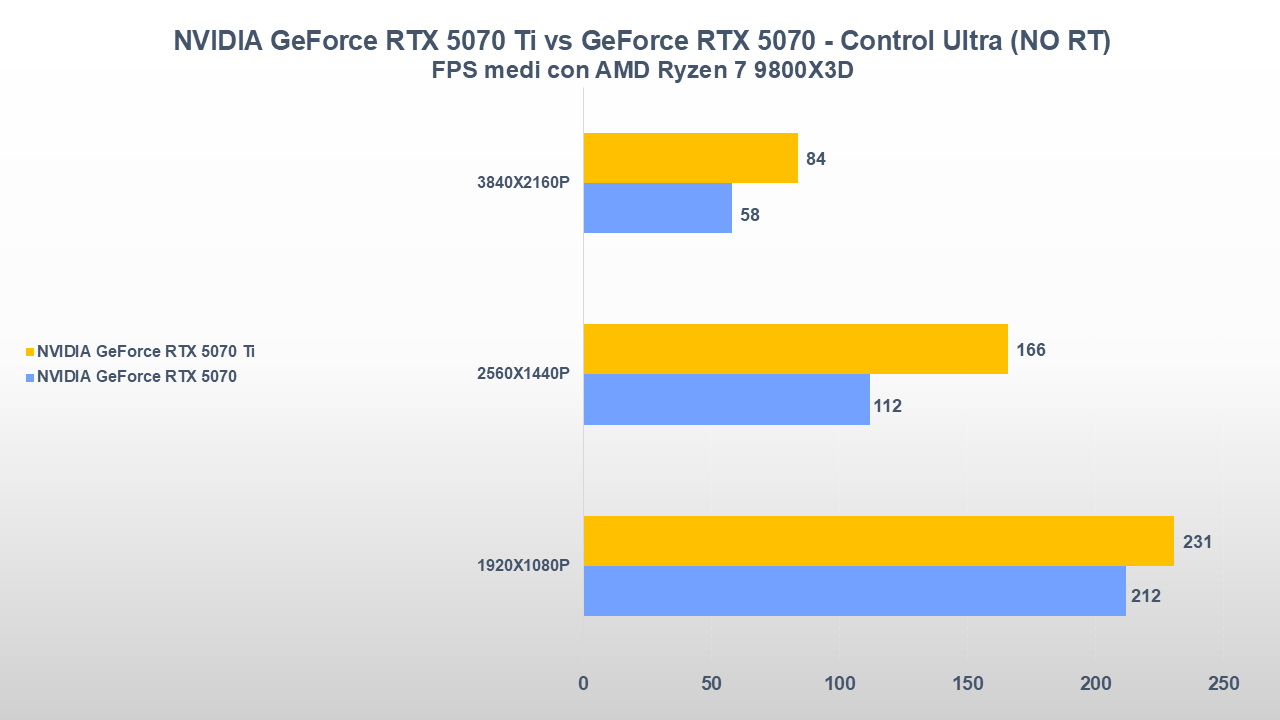 NVIDIA GeForce RTX 5070 Ti vs NVIDIA GeForce RTX 5070: media prestazioni nei giochi