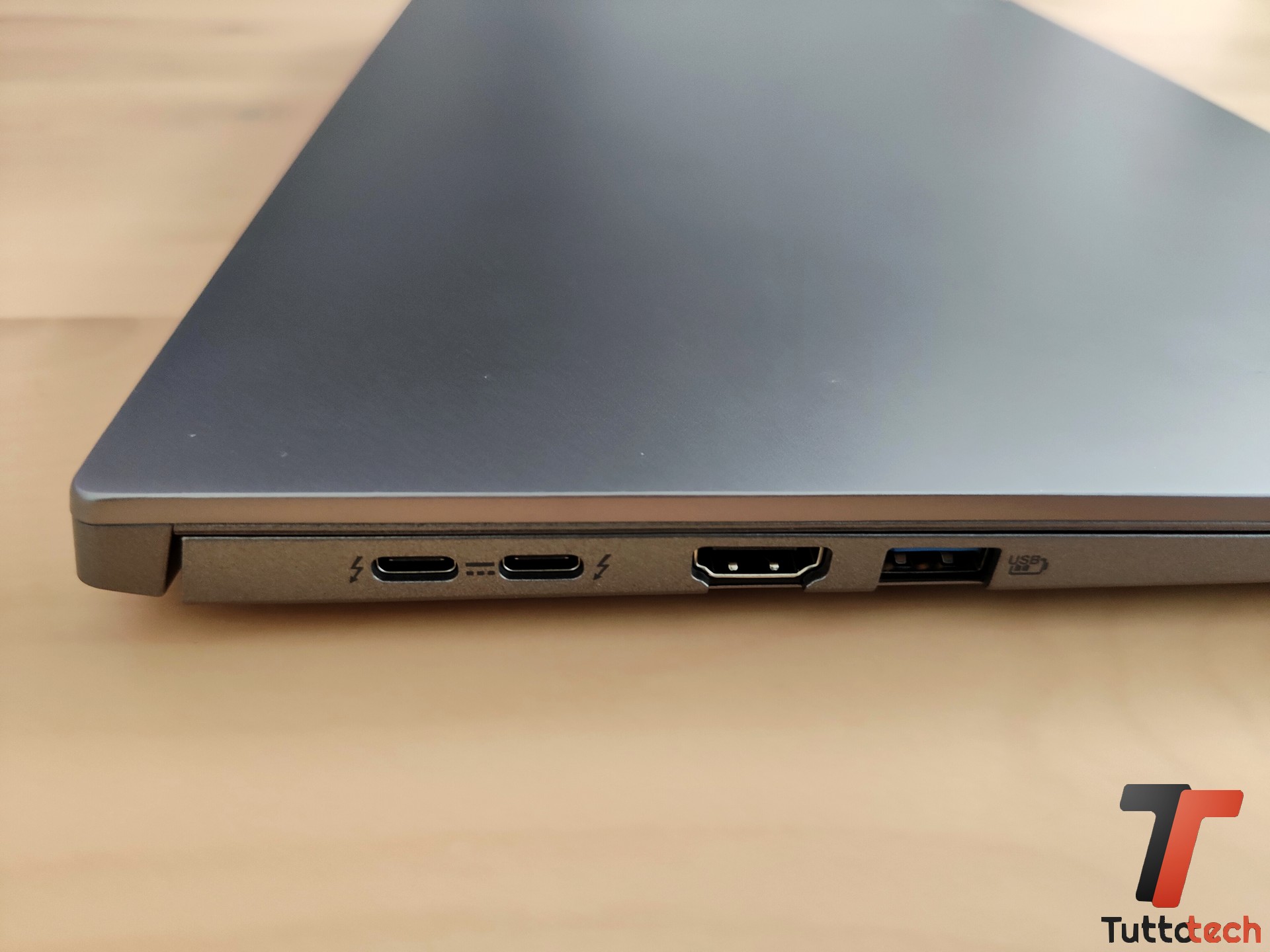 La piattaforma Intel in dotazione garantisce connettività di ultima generazione (o quasi), mentre sul versante porte ritroviamo praticamente le stesse opzioni dello Swift 14, con due USB 3.2 Gen1 Type-A e due USB-C 40 Gbps, senza dimenticare l’HDMI 2.1 per la gestione di display esterni (anche via USB-C e DP).