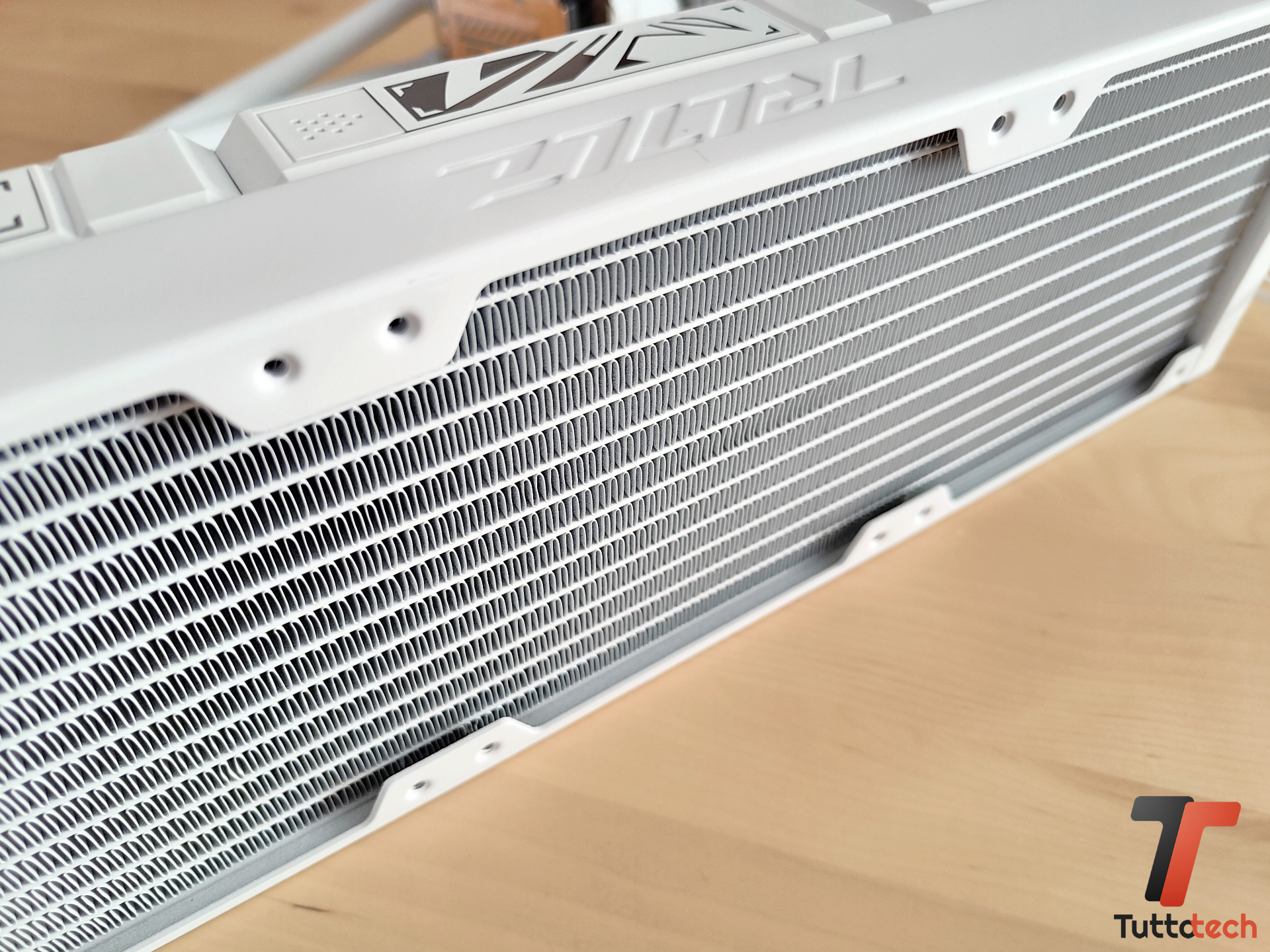 Ma partiamo dalle basi. ROG RYUO IV 360 ARGB è un dissipatore a liquido All In One con radiatore da 360 millimetri, uno standard ormai quando si tratta di AiO ad alte prestazioni (oltre alle varianti da 420 mm). Il radiatore, realizzato in alluminio, non è tra i più spessi che abbiamo visto su questo tipo di impianti, comunque con i suoi 30 mm di spessore risulta nella media e perfetto per il compito che deve svolgere.