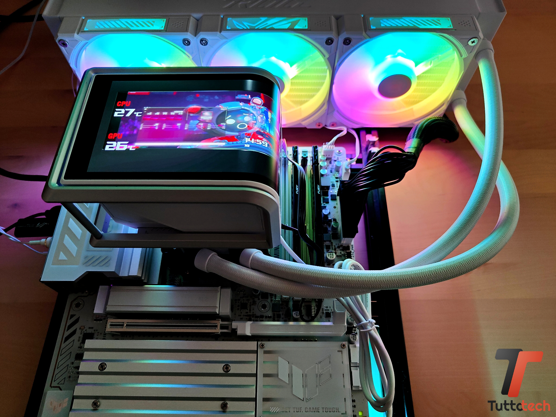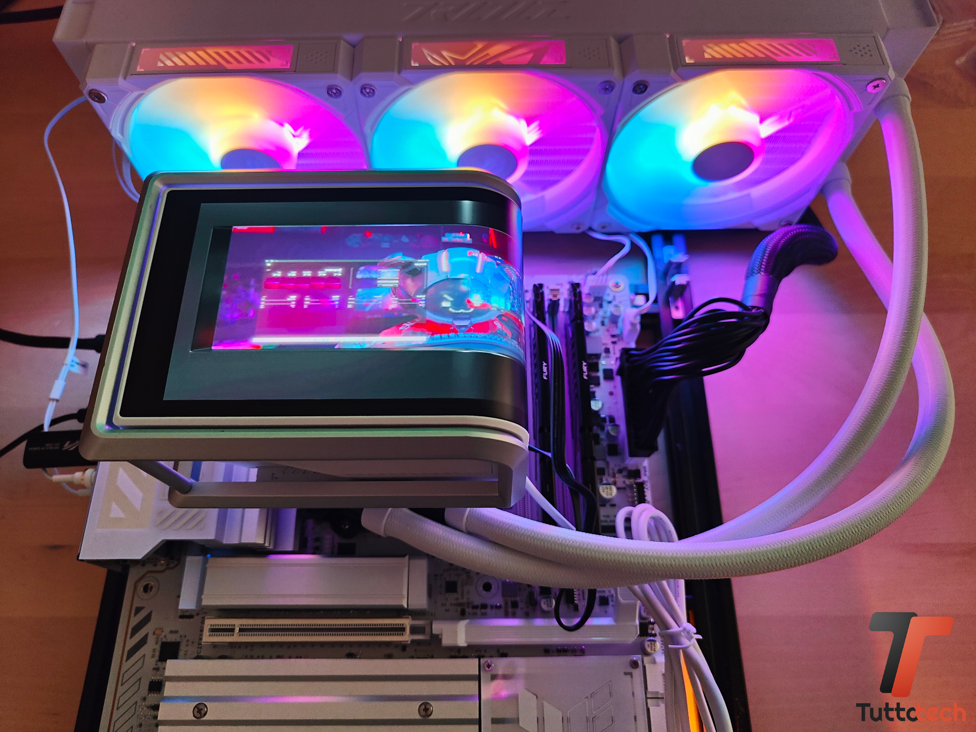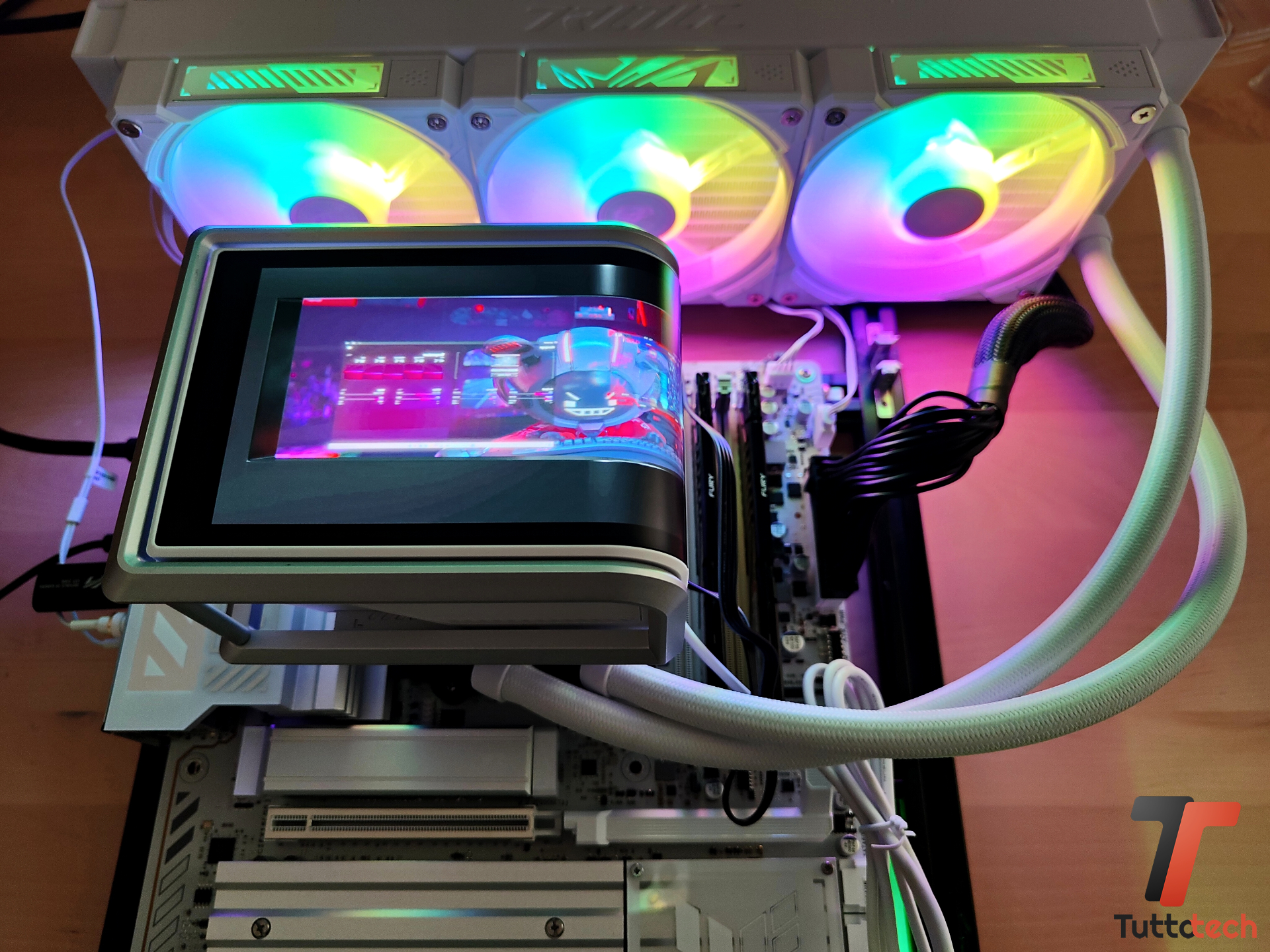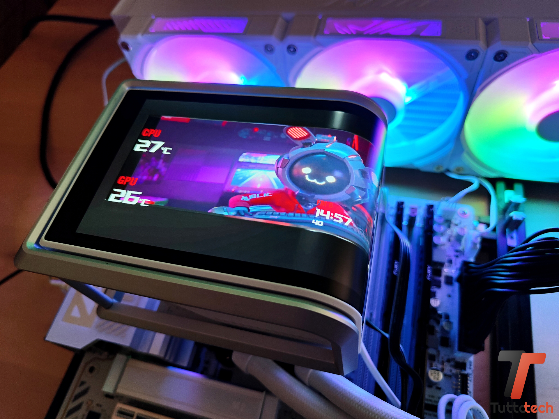Il display da 6,67″ senza dubbio si paga e a nostro avviso incide abbastanza sul prezzo finale che, allo stesso tempo, ci permette di mettere le mani su un AiO valido con ventole in daisy-chain, supporto ARGB avanzato e un blocco pompa/waterblock di alto livello.