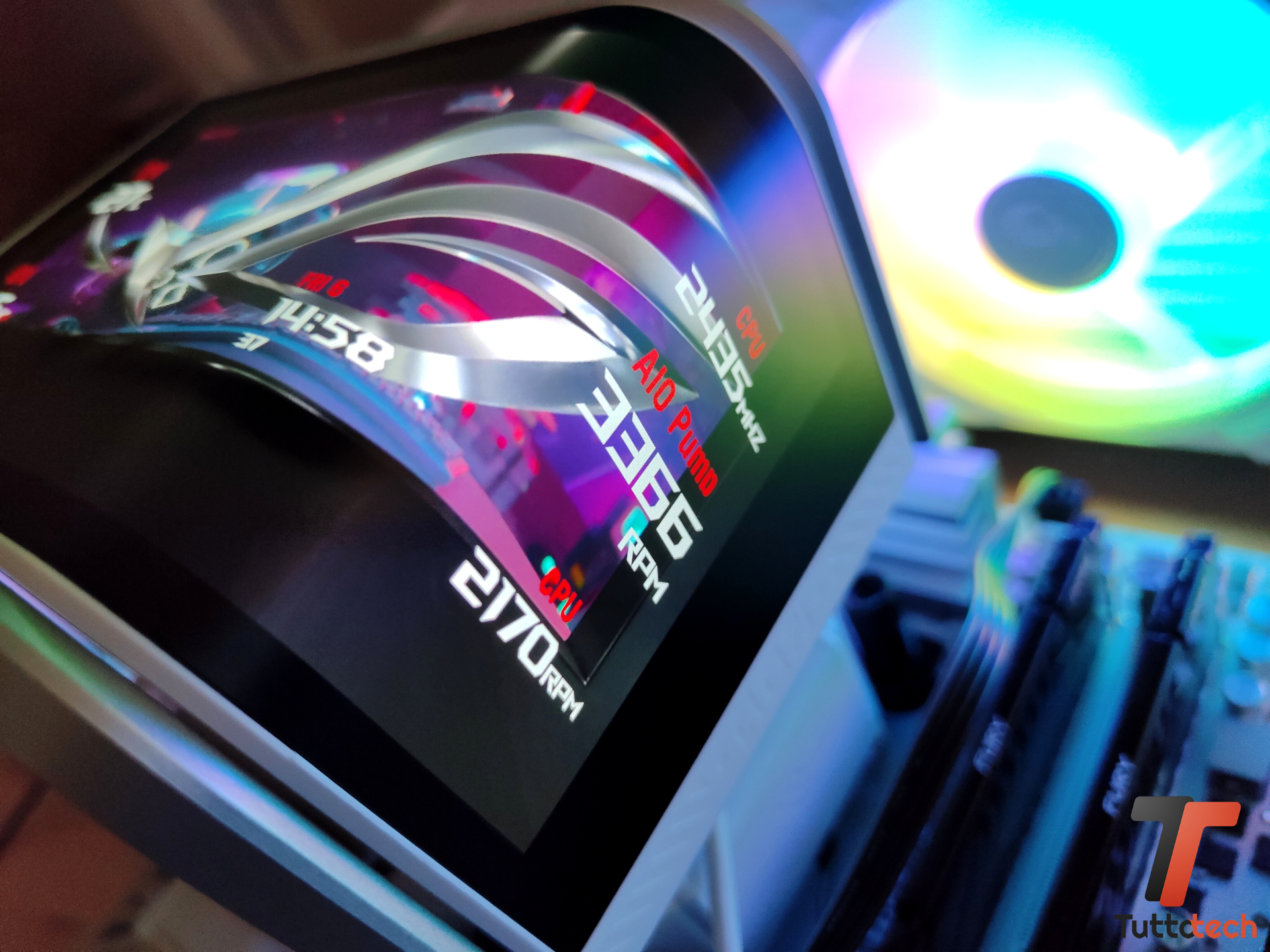 Quello che però colpisce di questo “blocco” è di sicuro il gigantesco display da 6,67″, un AMOLED curvo con risoluzione 2K che ci permette di riprodurre informazioni sul sistema, monitorare i valori oppure riprodurre immagini ed elementi multimediali (sempre personalizzabili).