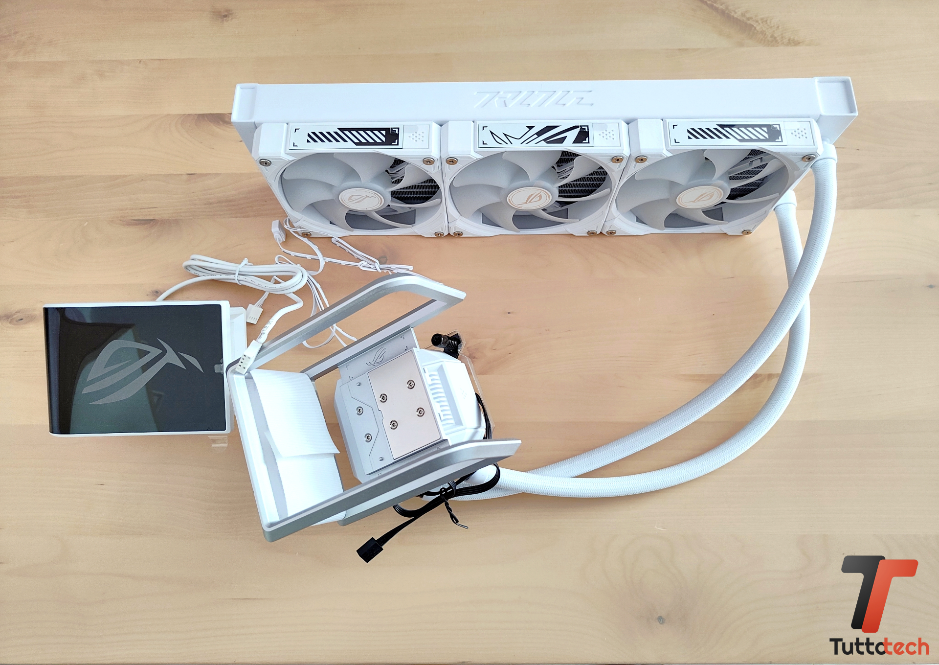 Probabilmente non è l’AiO da 360 mm meno ingombrante in circolo, tuttavia non possiamo ignorare (e non lo fa neanche ASUS) che quasi tutti i competitor nell’ultimo periodo stanno proponendo questo tipo di soluzione, abbinate comunque ad altri modelli più sobri e meno elaborati.