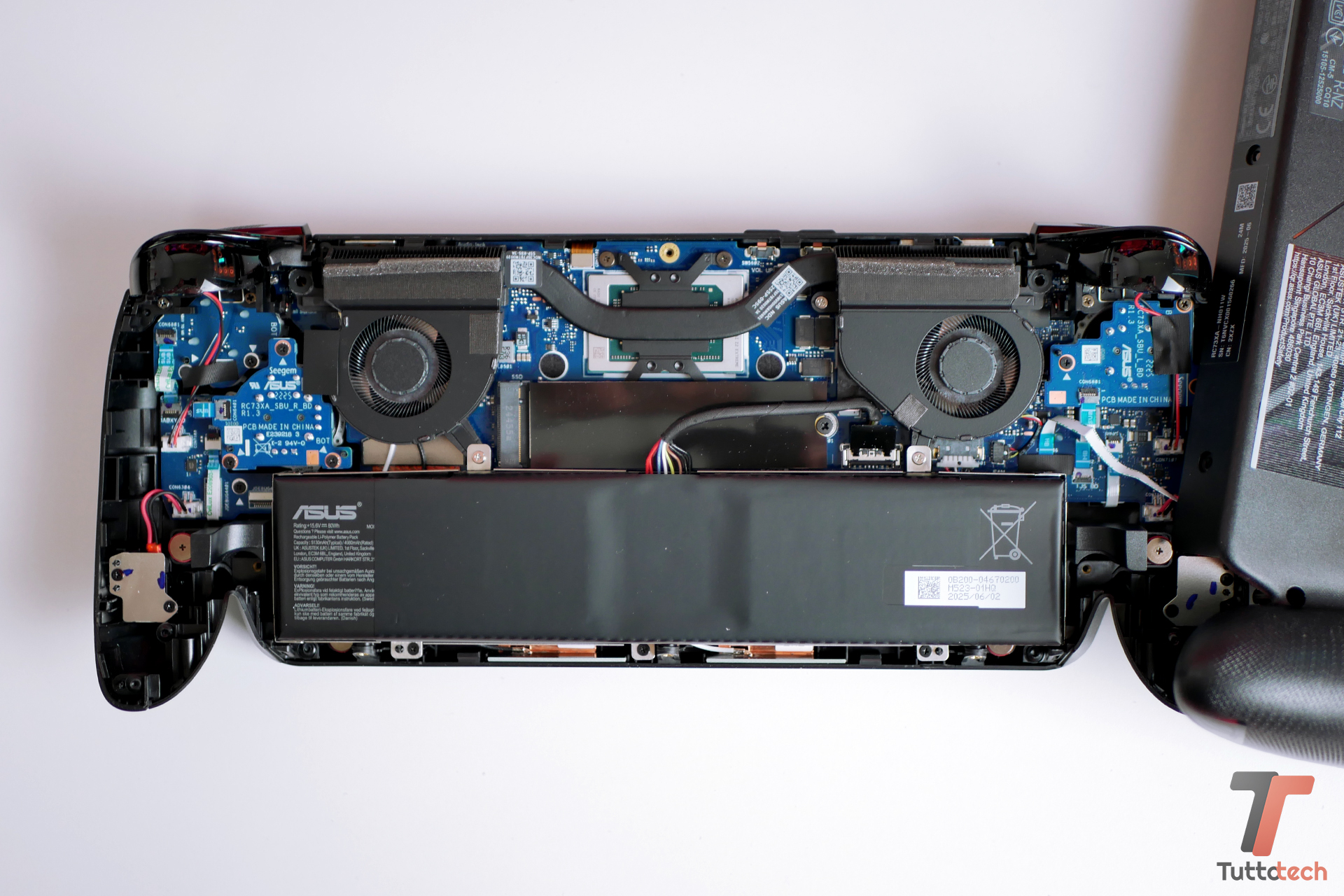 Nel complesso, però, la ROG Xbox Ally X rappresenta un riferimento per comfort e bilanciamento. I 715 grammi di peso sono distribuiti in modo impeccabile e superano con disinvoltura ogni test d’uso reale dal divano al letto, fino al classico “riprendi e gioca” appena estratta dallo zaino. La forma ispirata al controller Xbox non è solo una citazione estetica: è un principio di design funzionale che definisce una nuova idea di ergonomia portatile. Piccolo appunto per il sistema di dissipazione, due radiatori, due ventole ed una singola heat pipe, quanto basta per tenere temperature e rumorosità ampiamente sotto controllo.