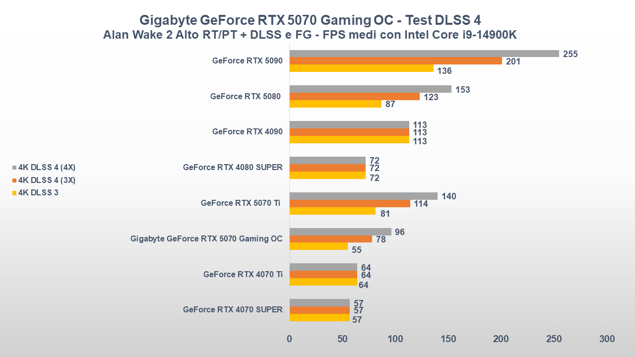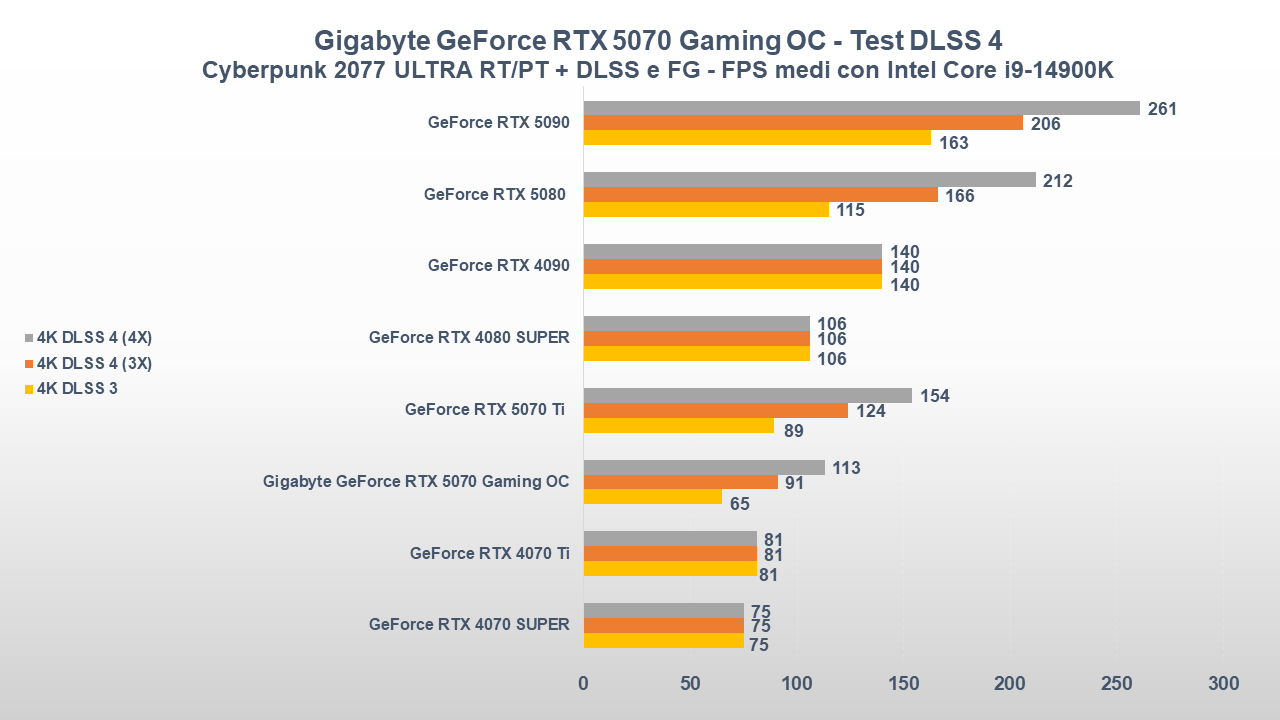 L’aggiornamento a una GeForce RTX 5070 è consigliabile, o meglio più appetibile, per un utente che proviene da una serie GeForce RTX 2070 o RTX 3060/3070, ma non dimentichiamo che il supporto per il DLSS 4 con Multi Frame Generator e preset 3X/4X rimangono ancora un punto a favore delle GPU GeForce RTX 50 Blackwell, anche rispetto ad Ada Lovelace.