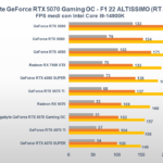 La GeForce RTX 5070 ha la meglio solo nel test Speedway, mentre riesce a essere spesso più veloce della GeForce RTX 4070 SUPER, che comunque vanta più unità di elaborazione a parità di memoria grafica (12 GB).