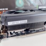 Il sistema di dissipazione adoperato dagli ingegneri Gigabyte è il classico WindForce, come detto con tre ventole proprietarie ad alte prestazioni Hawk, back-plate e l’ormai immancabile Screen Cooling che facilita il passaggio e lo smaltimento dell’aria calda sul retro del PCB e della scheda. In questo caso non c’è una camera di vapore (che come vedremo non serve vista la GPU), ma un’ampia base in rame nichelato che raffredda GPU e memorie, collegata a una serie di heatpipe (sempre in rame) che attraversano a loro volta un massiccio corpo lamellare.