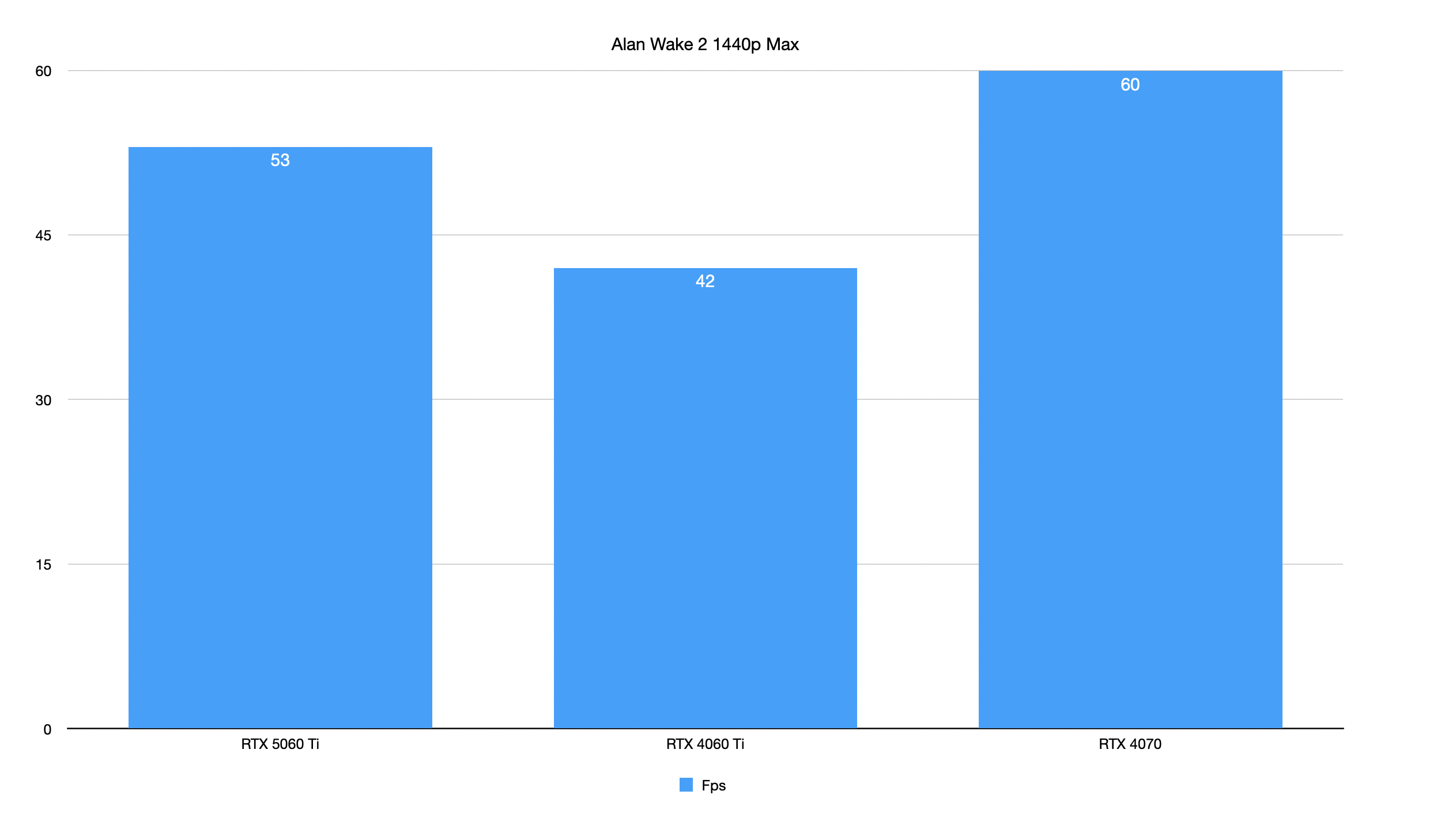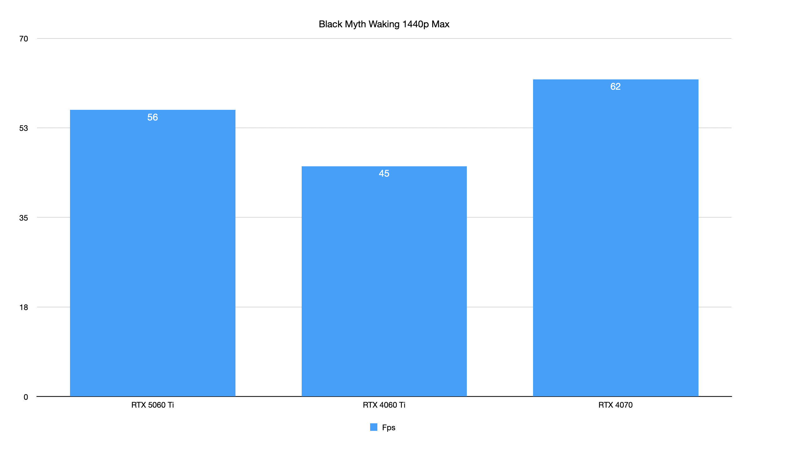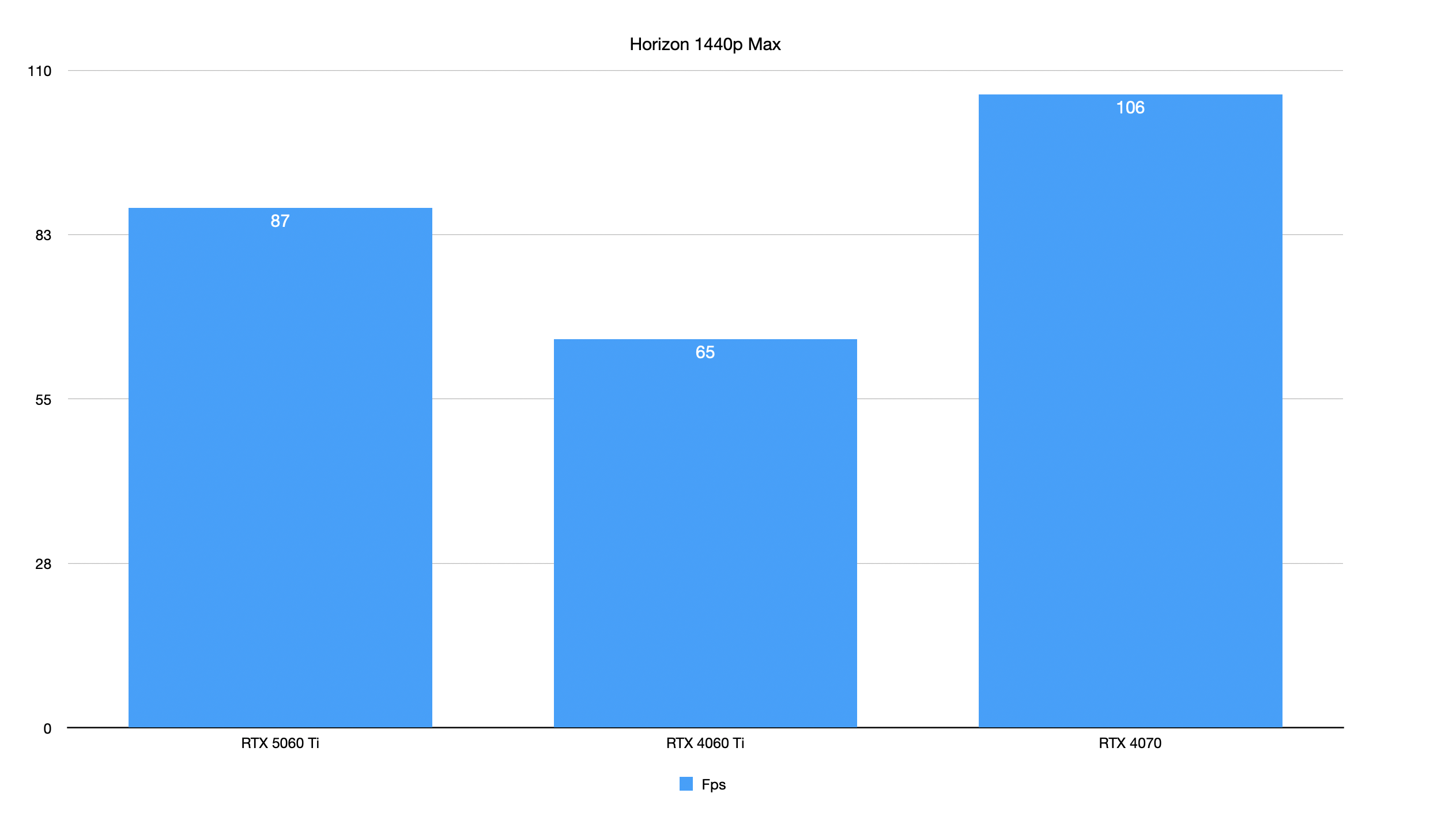 Anche con i giochi più complessi e recenti, la RTX 5060 Ti si comporta in modo convincente alla risoluzione QHD, mostrando una buona tenuta del frame rate grazie all’integrazione delle tecnologie DLSS 4 e Multi Frame Generation. Con il preset ottimale (2x), titoli impegnativi come Black Myth: Wukong, Alan Wake II, Hogwarts Legacy e Horizon Forbidden West girano in maniera fluida, spesso vicino alla soglia dei 100 fps, in alcuni casi superandola, in altri mantenendosi leggermente al di sotto. In ogni situazione, però, l’esperienza resta stabile e più che godibile, anche con ray tracing attivo e impostazioni grafiche spinte.