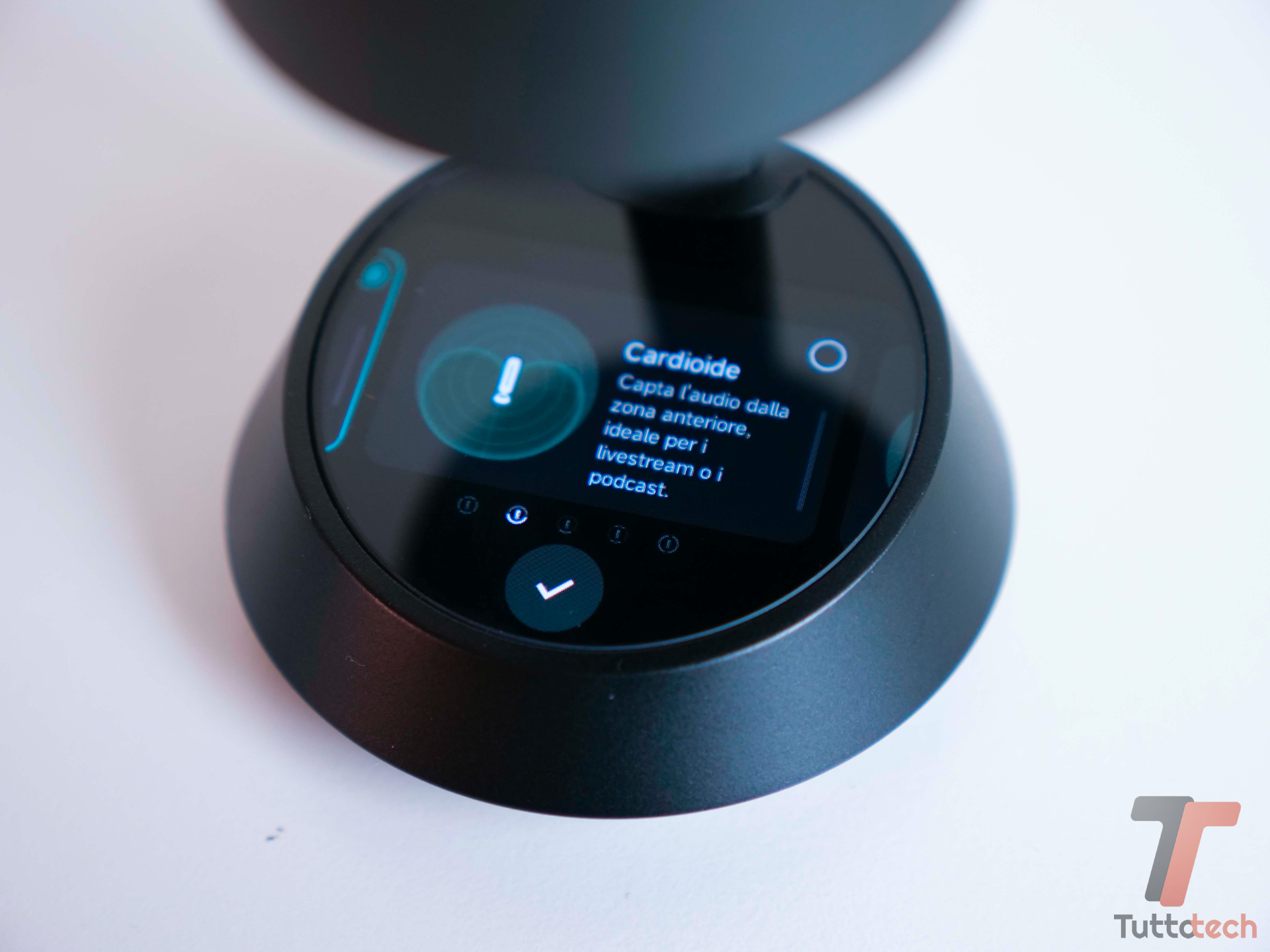 Uno dei punti più convincenti di Wave è la semplicità d’uso. Abbiamo collegato il microfono al Mac con il cavo USB-C incluso e scaricato l’app “Wave Controller” su macOS (sappiamo chiaramente che è disponibile anche per Windows), dove abbiamo trovato una UI pulita e molto intuitiva. Il display touch da 1,82 pollici è un surplus raro in questa categoria: consente di cambiare al volo modalità audio, regolare il volume, attivare la connettività Bluetooth o WiFi e perfino di leggere notifiche live nel caso di videoconferenze.