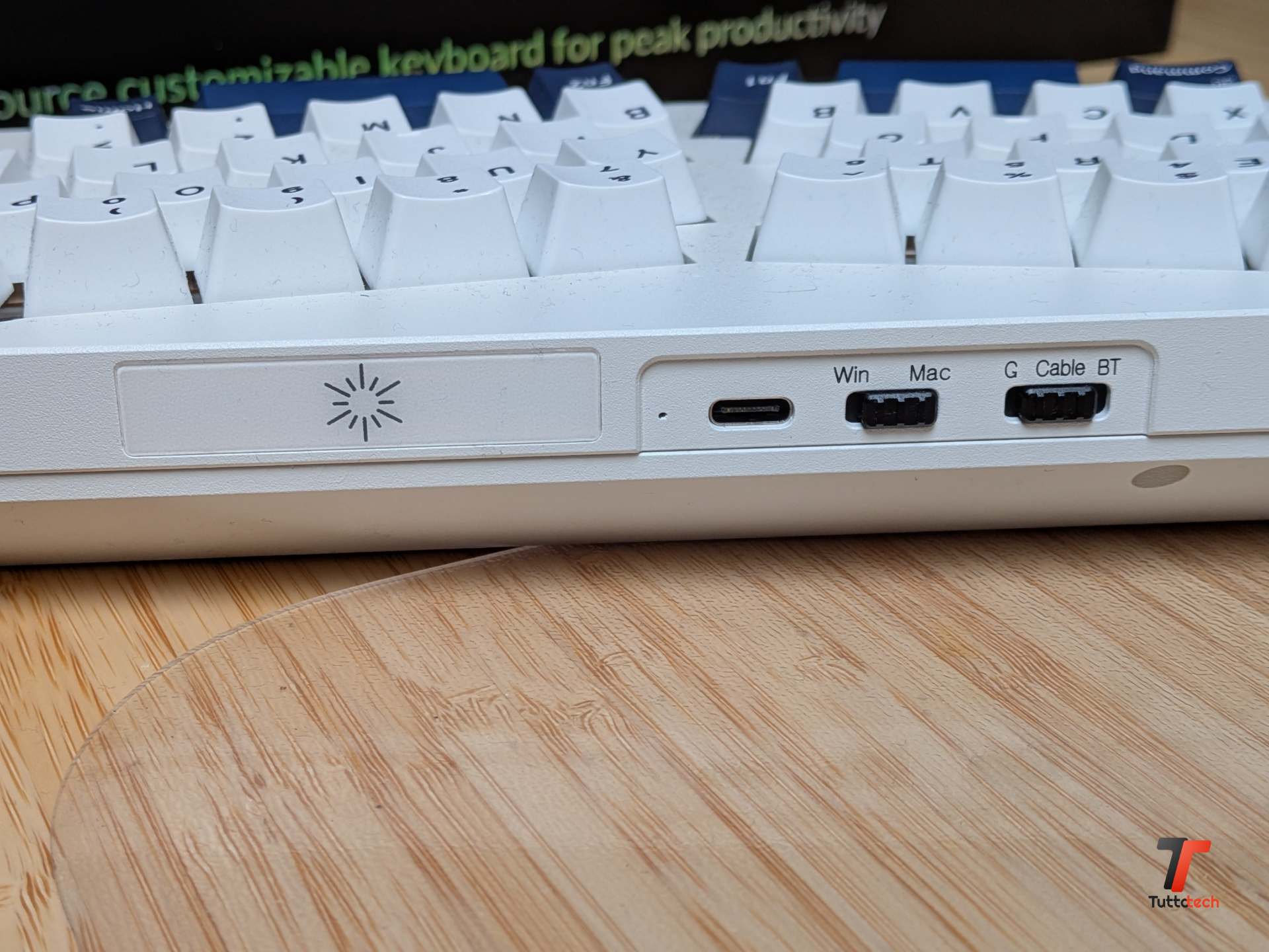 Tutto configurabile in pochi minuti e salvato direttamente nella memoria della tastiera. La possibilità di salvare due layout diversi, uno per macOS e uno per Windows, e switchare tra loro con un interruttore fisico sul retro è comodissima: stesso hardware, configurazioni diverse a seconda del sistema operativo.