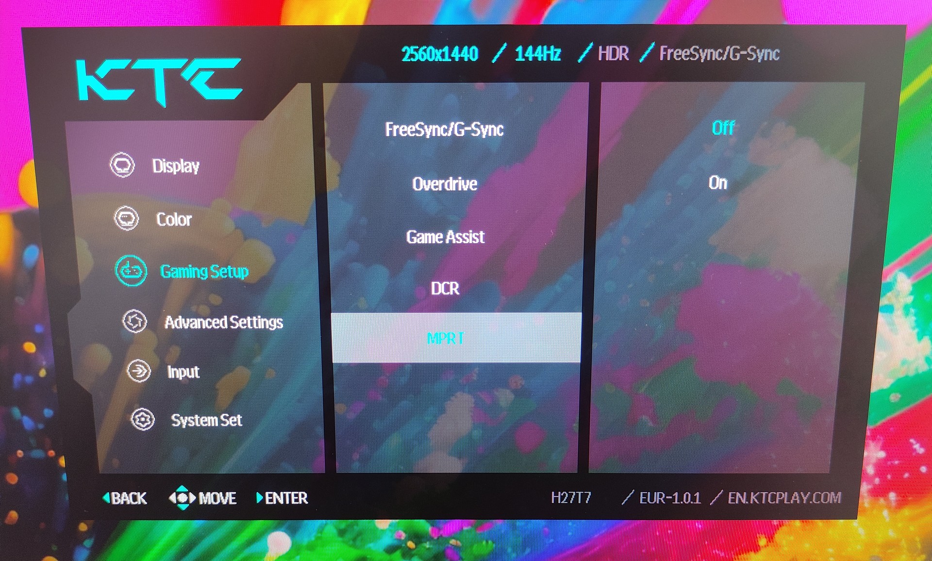 La luminosità è sicuramente sopra la media per un IPS economico, superando senza problemi quota 400 nit ma comunque non abbastanza per godere appieno dei contenuti HDR. Se rimaniamo in campo SDR, il KTC H27T7 può soddisfare secondo noi un’ampia fetta di utenza, non solo di fascia bassa per intenderci. Quanto al tempo di risposta, confermiamo che il monitor ha un response time medio di circa 3 ms, inoltre in gaming consigliamo di attivare l’opzione MPRT se cercate di tirare fuori tutto da questo monitor (insieme al refresh impostato a 185 hertz s’intende) e avvicinarvi al famoso MPRT di 1 secondo.