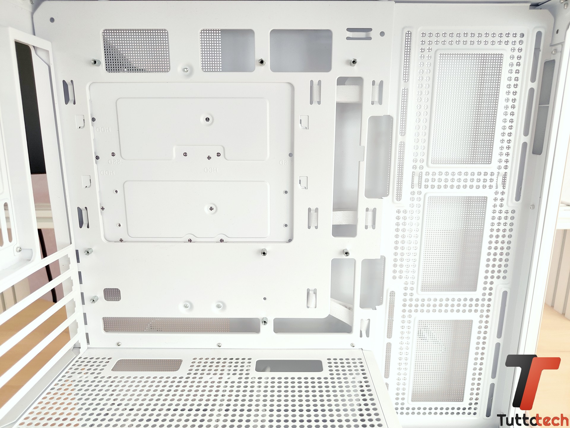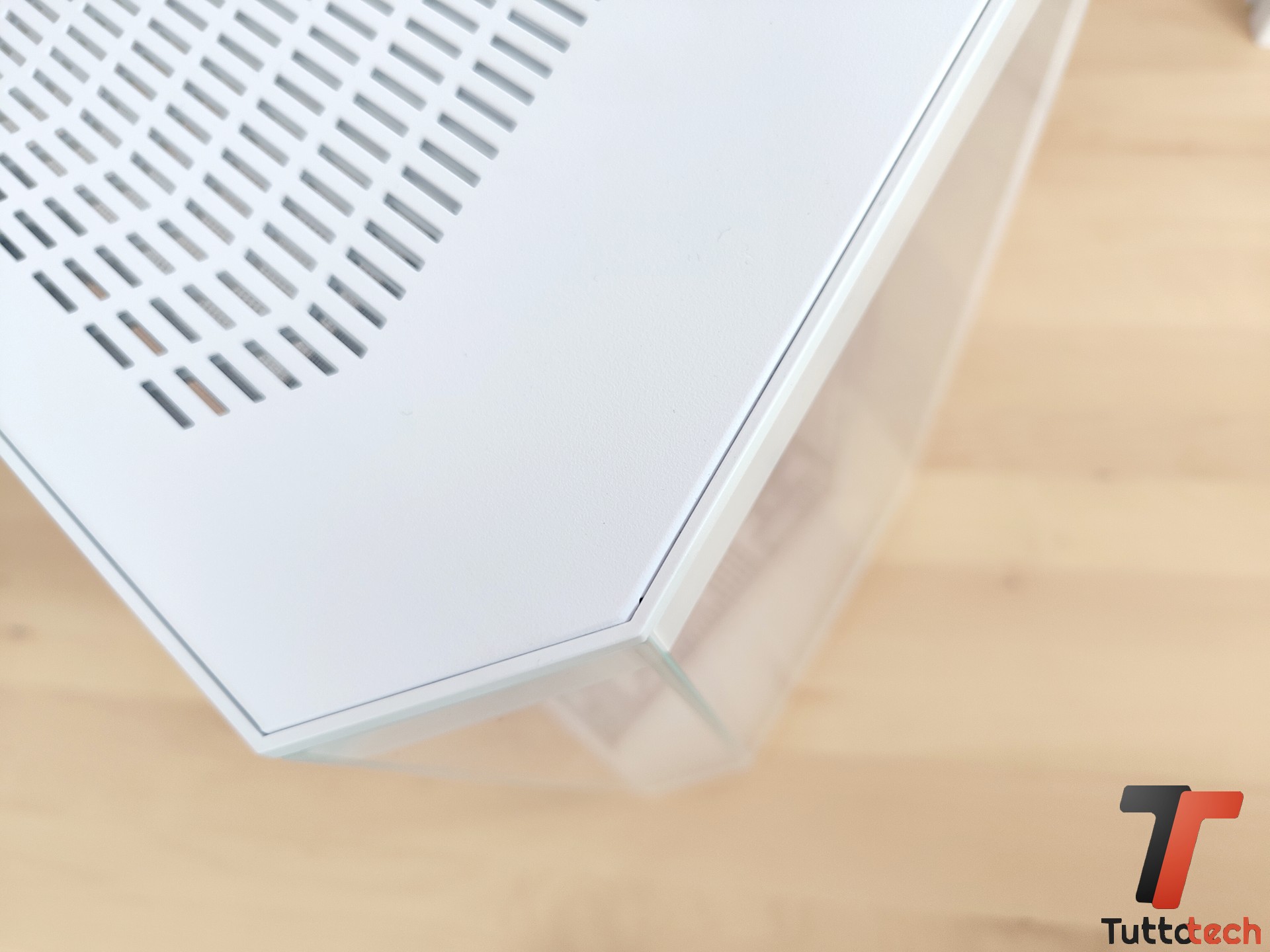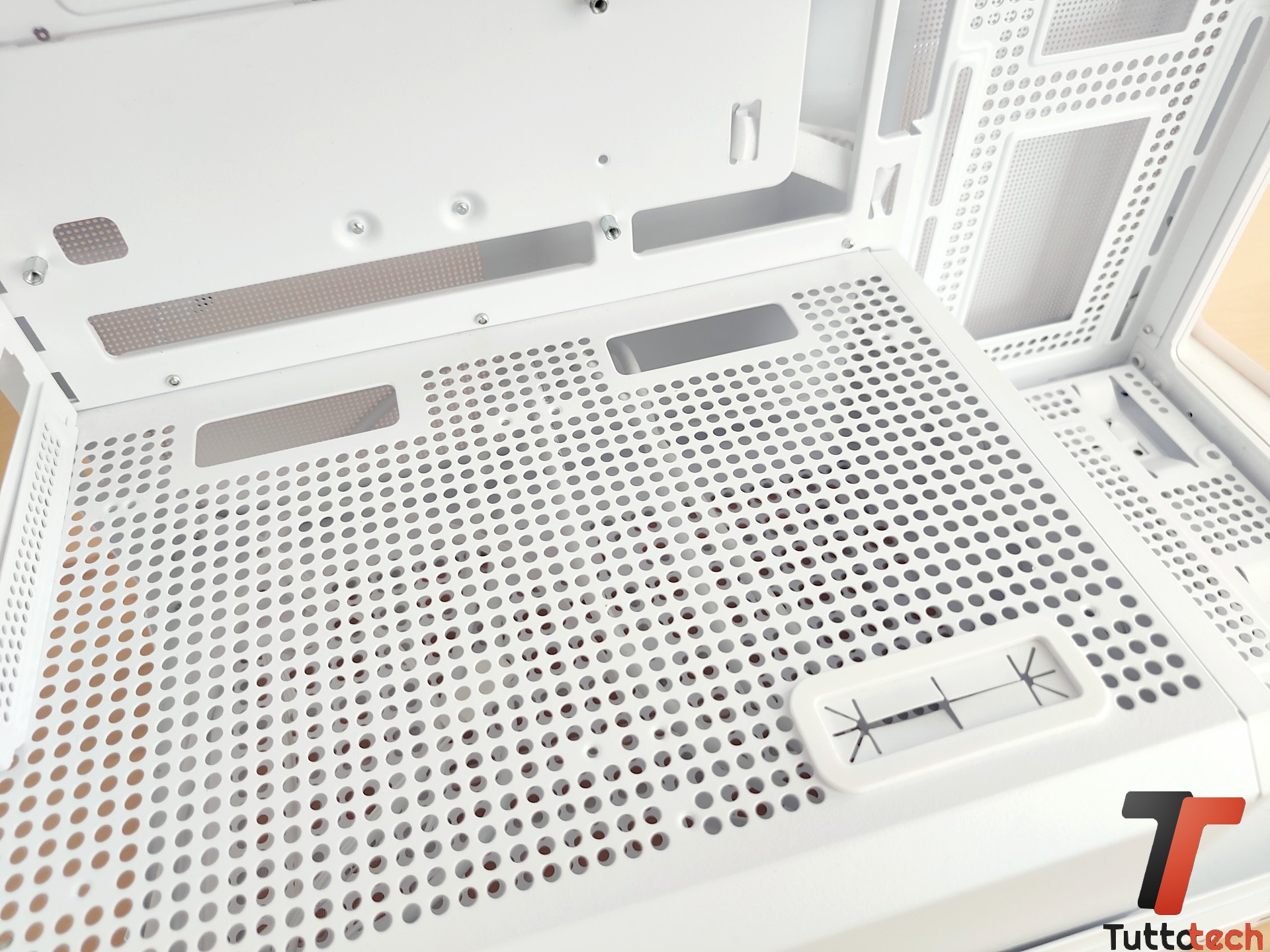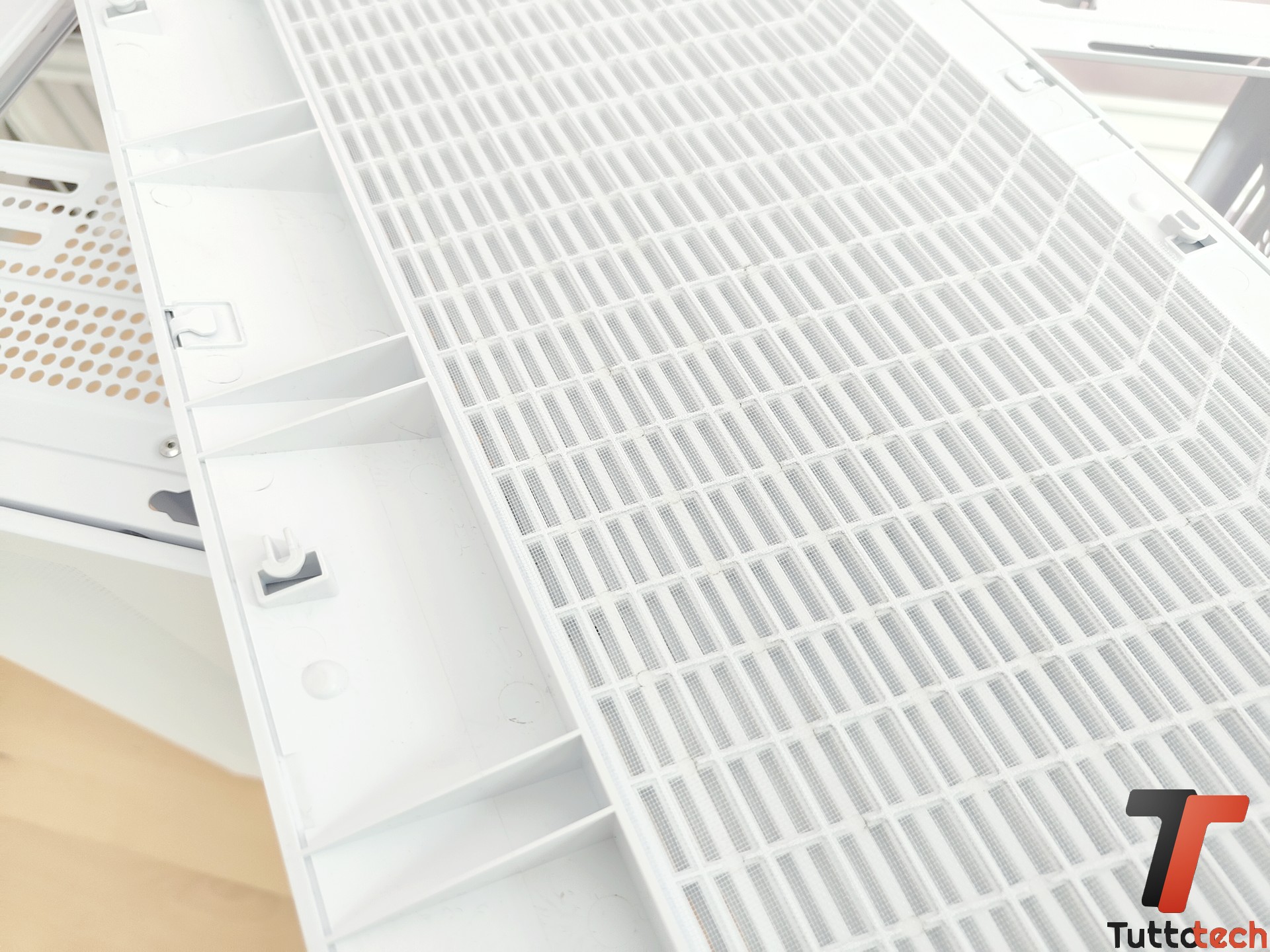 In primis segnaliamo un design ottimizzato per la gestione dei cavi, con guide da 33 mm e strisce in velcro per tenere tutto in ordine. Sulla base e sul top sono presenti invece due generosi filtri antipolvere, senza dimenticare una certa cura per il pannello I/O posto sul laterale, equipaggiato con una USB Type-A 5 Gbps, una USB-C 20 Gbps, audio in/out e pulsante led dedicato per gestire gli effetti luce con un click.
