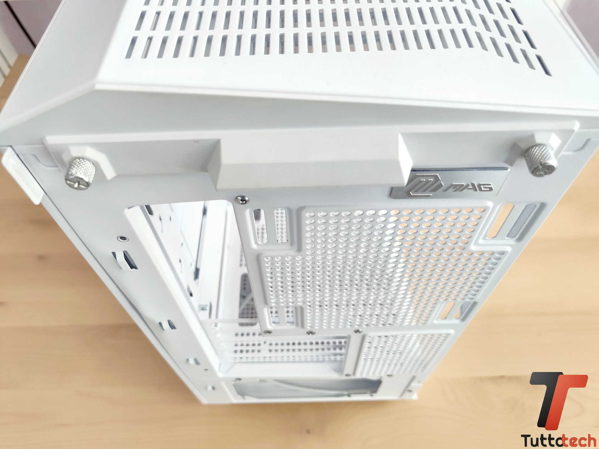 Considerando che siamo di fronte a un case M-ATX da cicrca 100 euro, finora non abbiamo molto da obiettare al MAG PANO M100 PZ, una soluzione che non vuole rinunciare ad alcune chicche nonostante il budget limitato. Oltre al già citato vetro temperato a 270°, che da solo vale quasi il suo prezzo (per gli amanti del genere), il produttore ha dotato questo telaio di alcune delle caratteristiche più richieste dagli assemblatori.