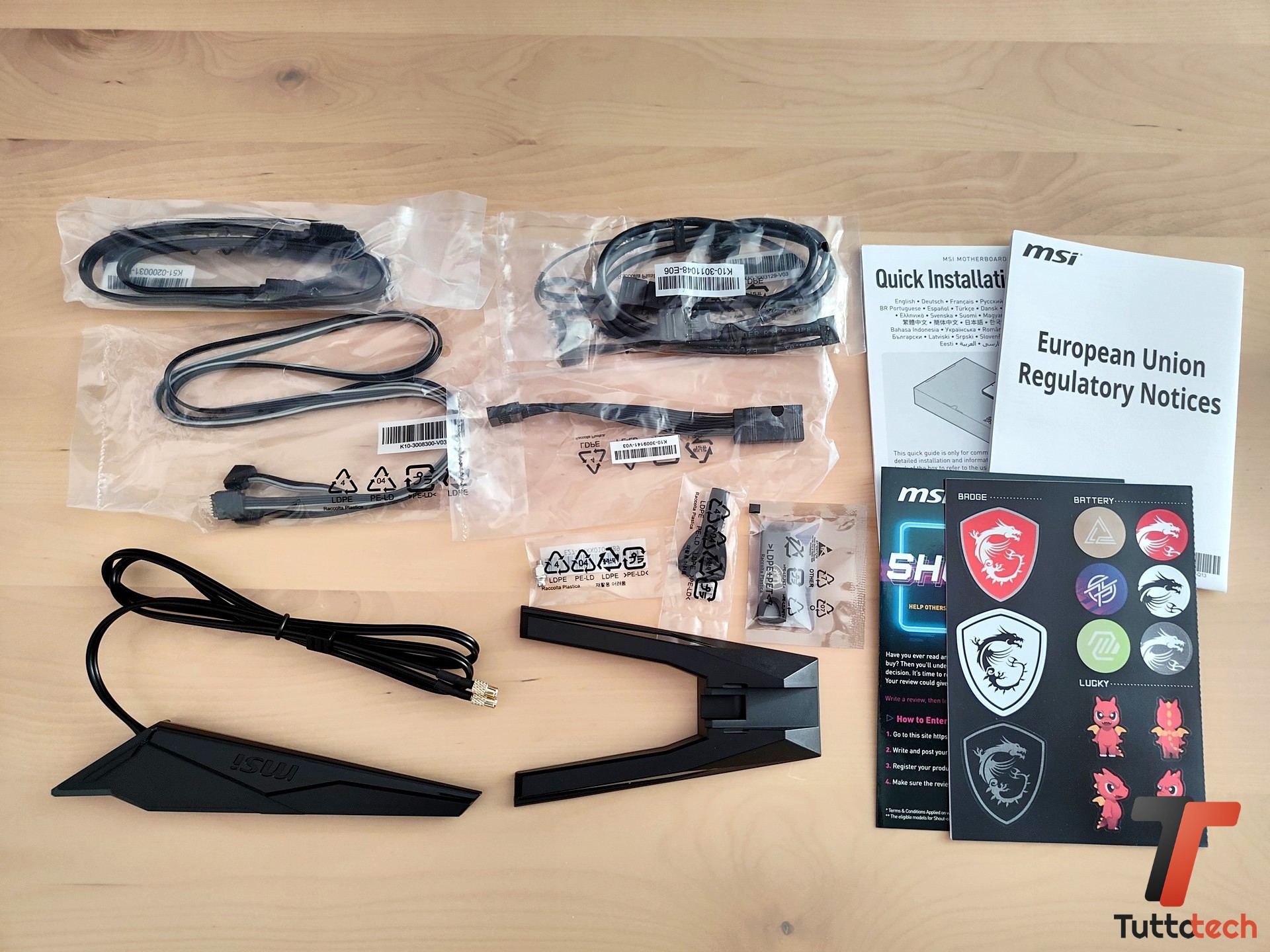 La dotazione è molto più ampia comunque, e la trovate in dettaglio sotto, ma già fino a qui si capisce che su questa motherboard di sicuro non avremo problemi di compatibilità agli standard più moderni, comprese per intenderci le periferiche ARGB più recenti o i componenti MSI che supportano il connettore proprietario MSI EZ Conn.