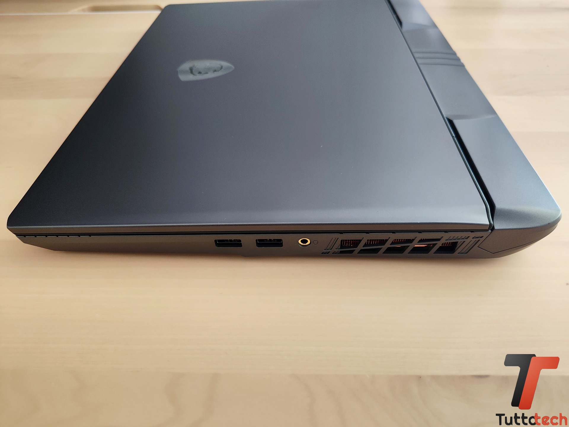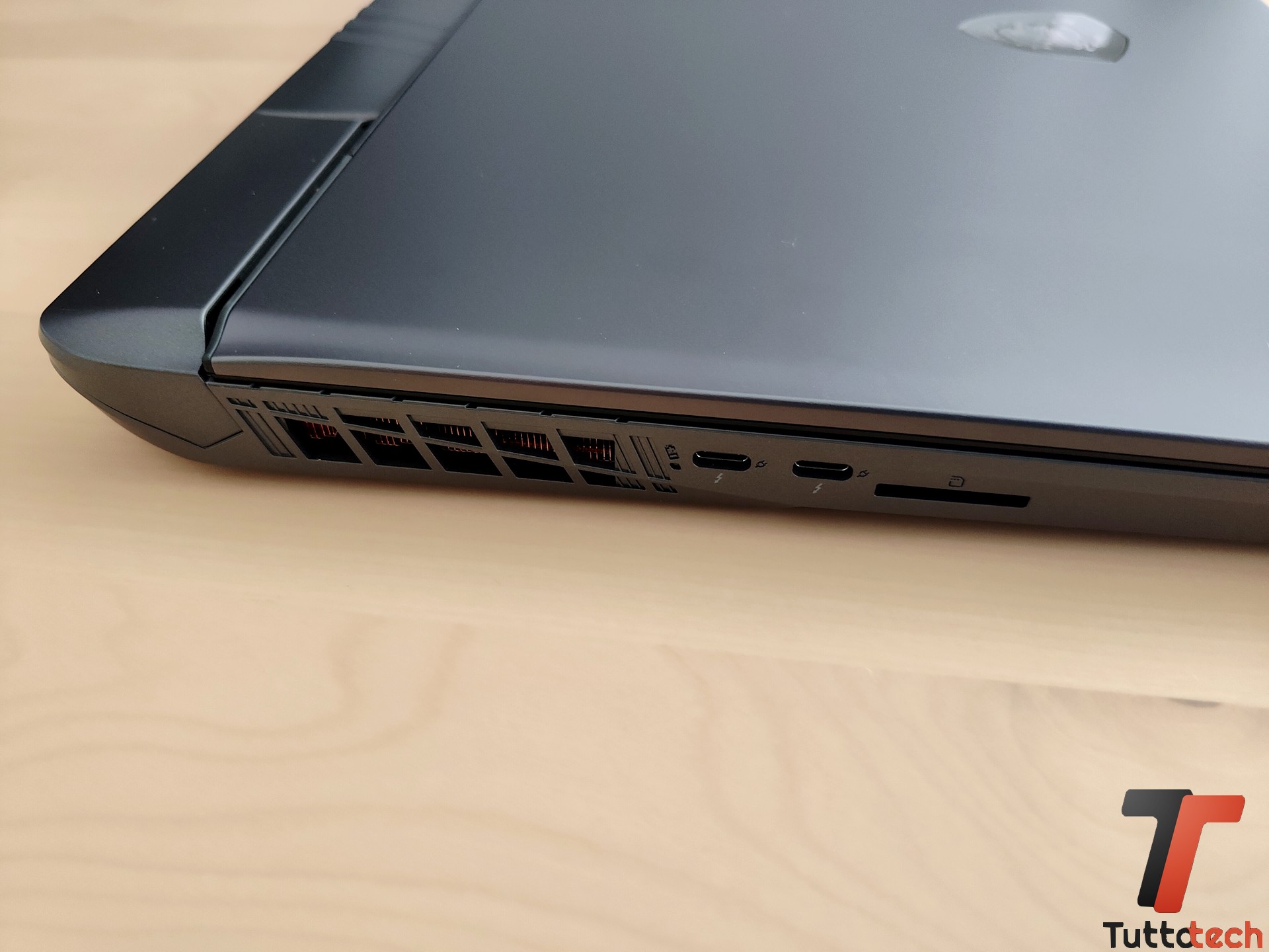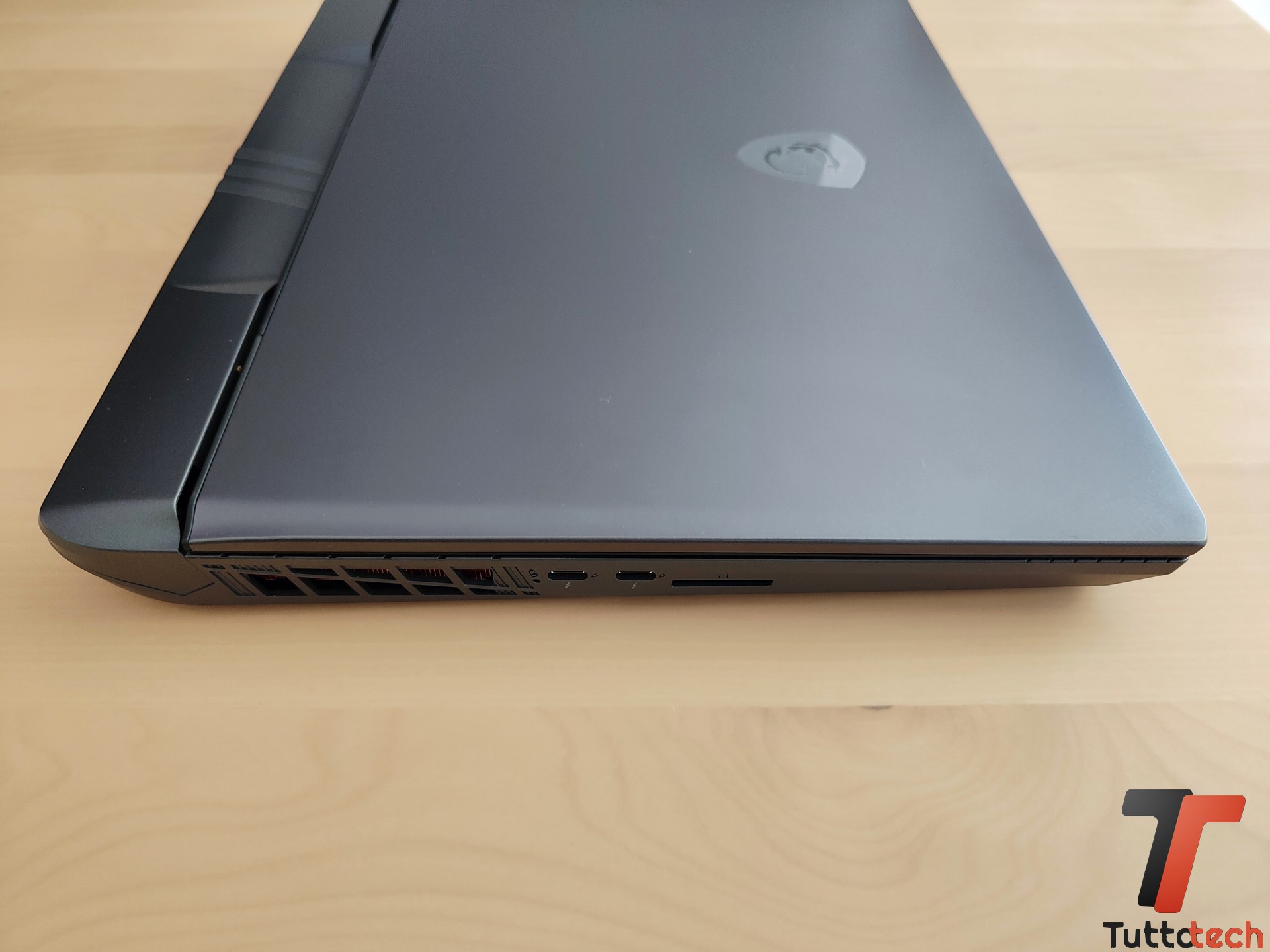 Anche lo spessore di 2,8 centimetri (nella parte più alta) è in linea con altri notebook da gaming di pari fascia, mentre riguardo l’estetica, le linee non si discostano troppo da altri modelli gaming MSI, cercando di bilanciare il “lato gaming” con tanto di tastiera ARGB a un’estetica non troppo aggressiva o esagerata.