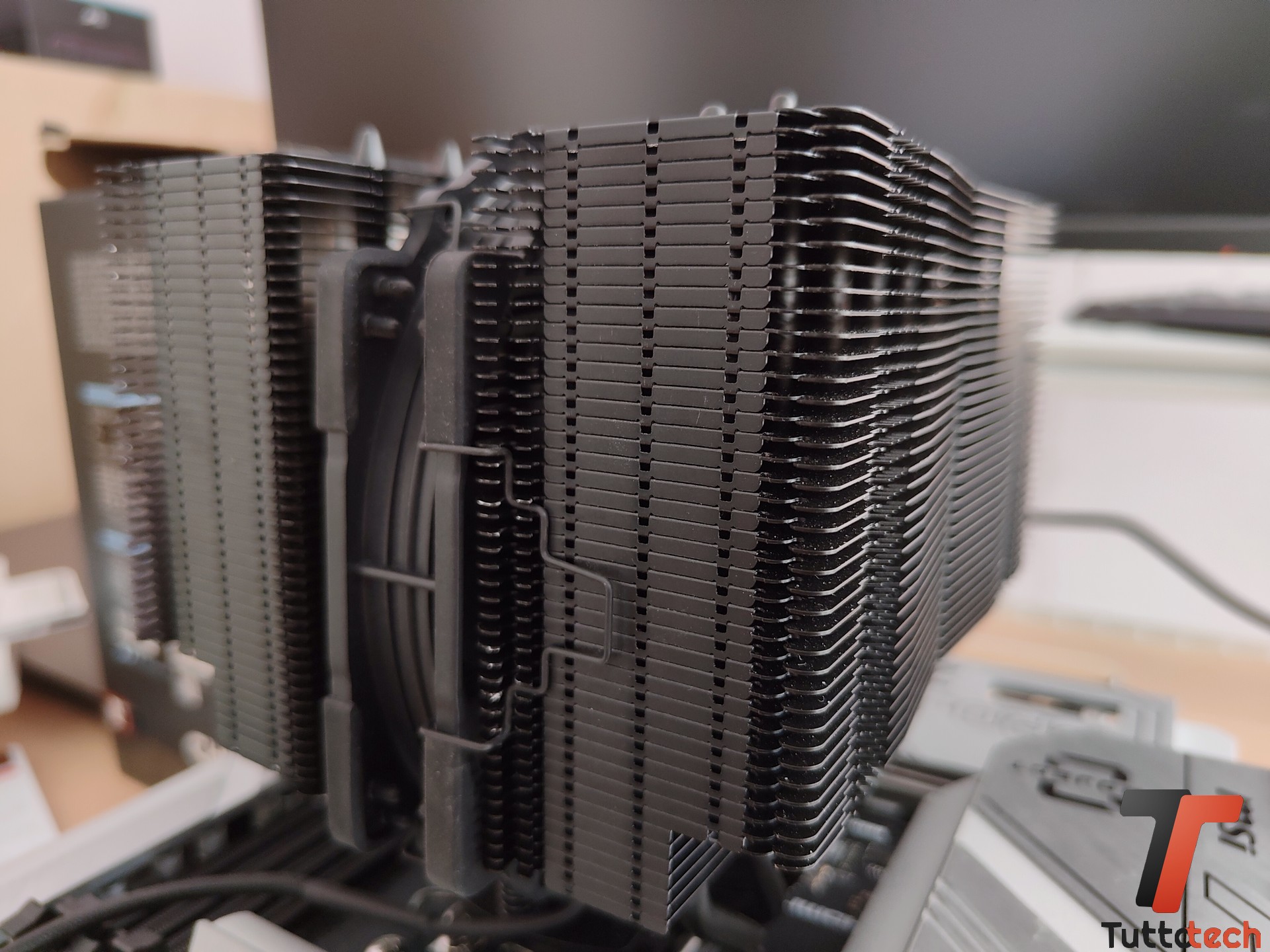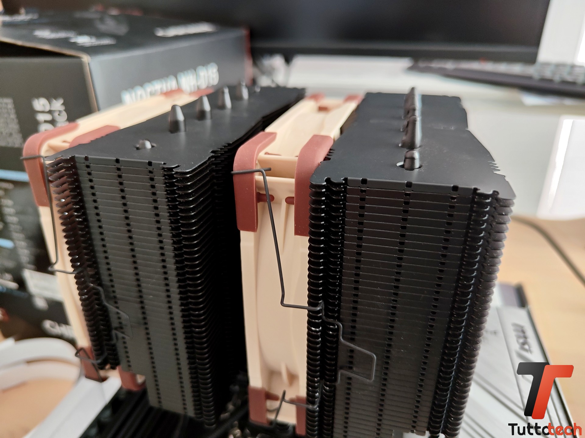 Certo il costo non è basso, ma all’atto pratico il mix di novità e il miglioramento gen su gen non viene fatto pagare tutto all’utente. Sia chiaro, la nuova arrivata non stravolge prestazioni e qualità della sua antenata, ma fa esattamente quello che dice Noctua, ovvero si migliora sotto il rapporto prestazioni/rumore (che poi è quasi la stessa cosa).