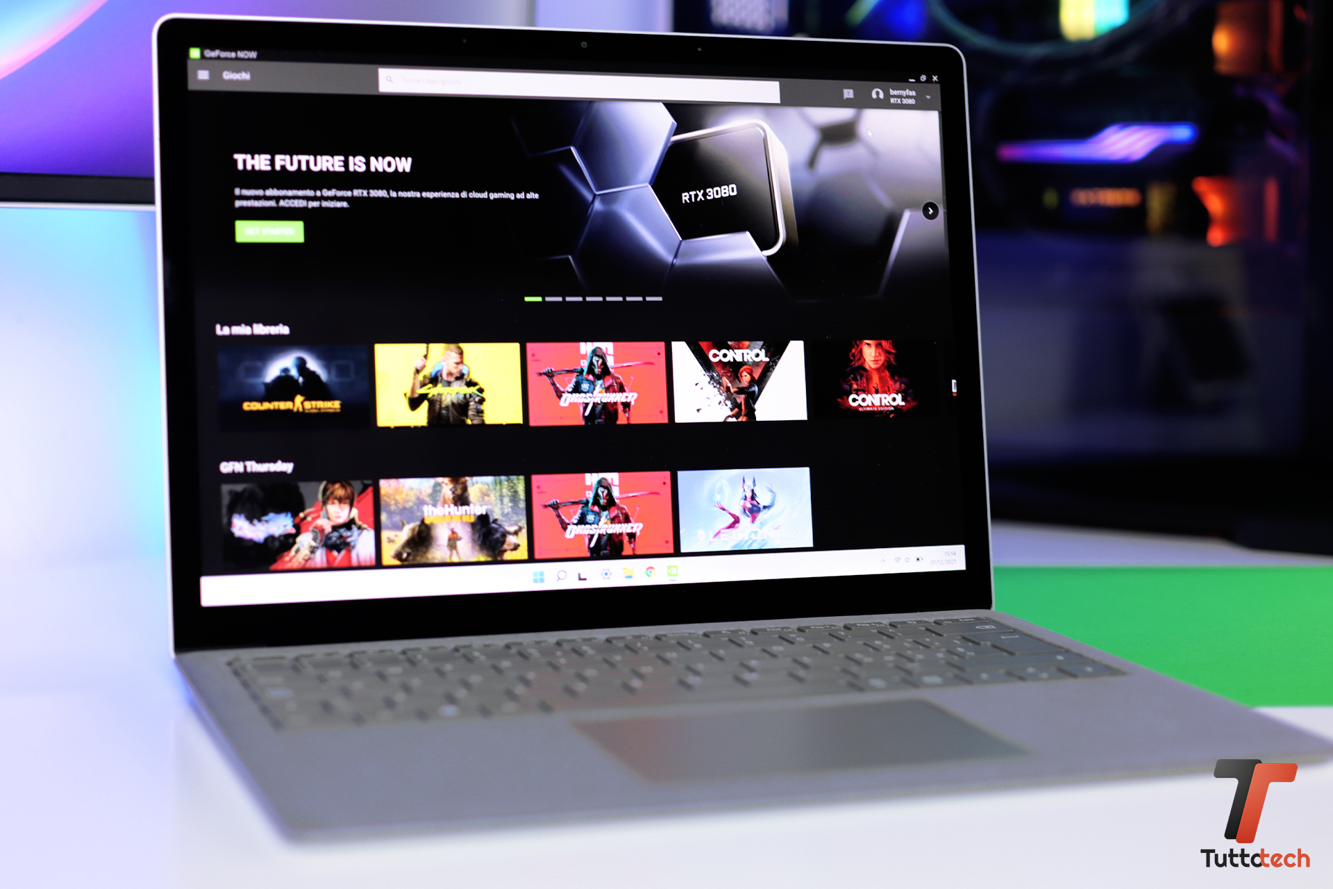In ambito Windows, ho evitato di prendere macchine gaming e di giocare con GeForce NOW, sarebbe stato un controsenso ed allora ho provato il servizio sul Surface Laptop 4 con Intel Core i5 di undicesima generazione con grafica integrata Intel Xe, una scheda integrata che non permette di giocare in maniera decente praticamente a nulla in particolare dovendo gestire la risoluzione generosa del Surface. Ebbene con NVIDIA GeForce NOW RTX 3080 su Surface Laptop 4 ho avuto una delle sessioni di gioco in streaming quanto più vicina possibile al vero gaming. Ad onor del vero l’esperienza migliore in assoluto l’ho avuta su un Mini PC con Ryzen 5 4500U ma con connessione Ethernet che effettivamente rende il tutto molto più solido.