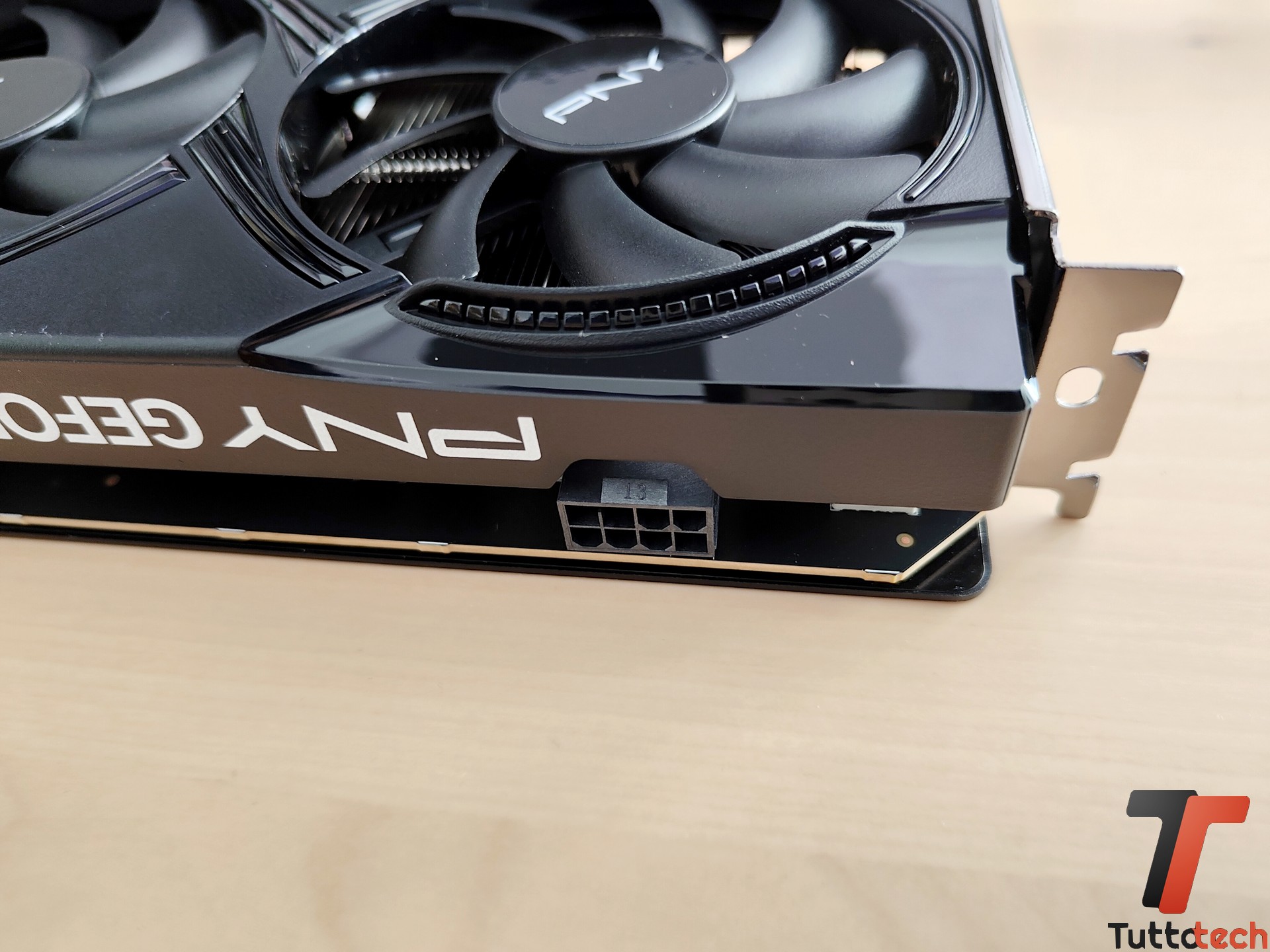 Con i suoi 130 watt, PNY ci dice sostanzialmente che la GeForce RTX 5050 8 GB può essere raffreddata anche con un dissipatore a singola ventola; nel nostro caso il produttore ci ha fornito il modello a doppia ventola comunque compatto per dimensioni e peso.