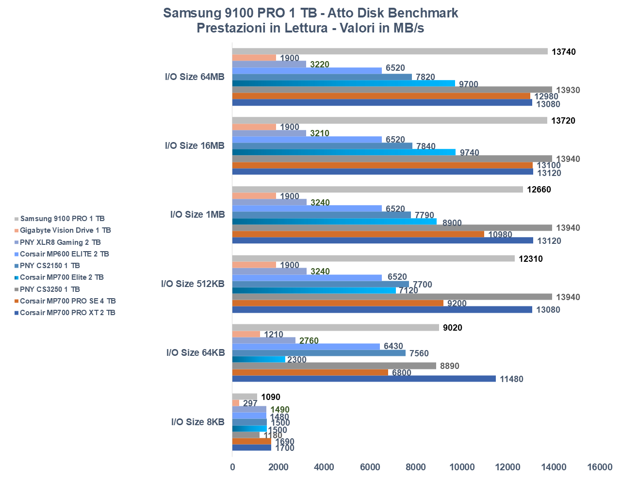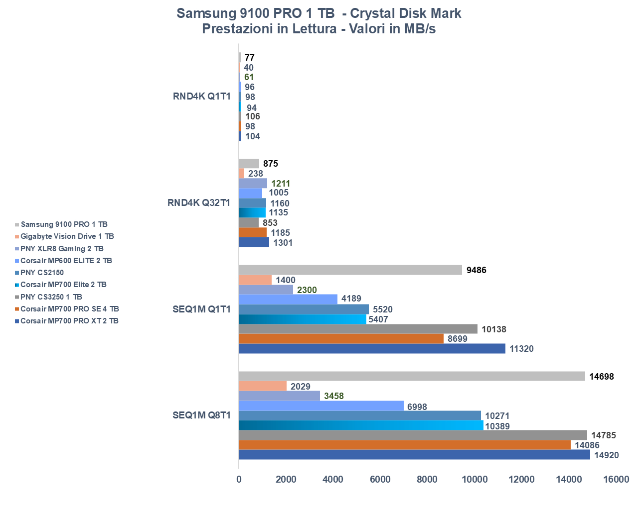 Fatte le premesse del caso, vediamo come si comporta il 9100 PRO, testato nella versione da 1 terabyte, quindi verosimilmente la meno veloce del lotto.