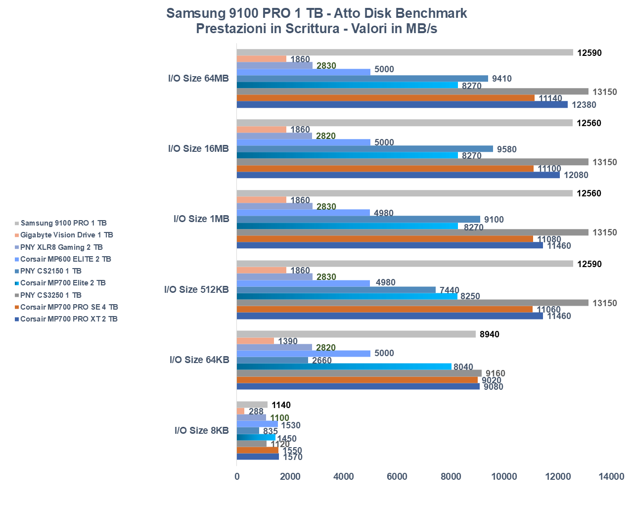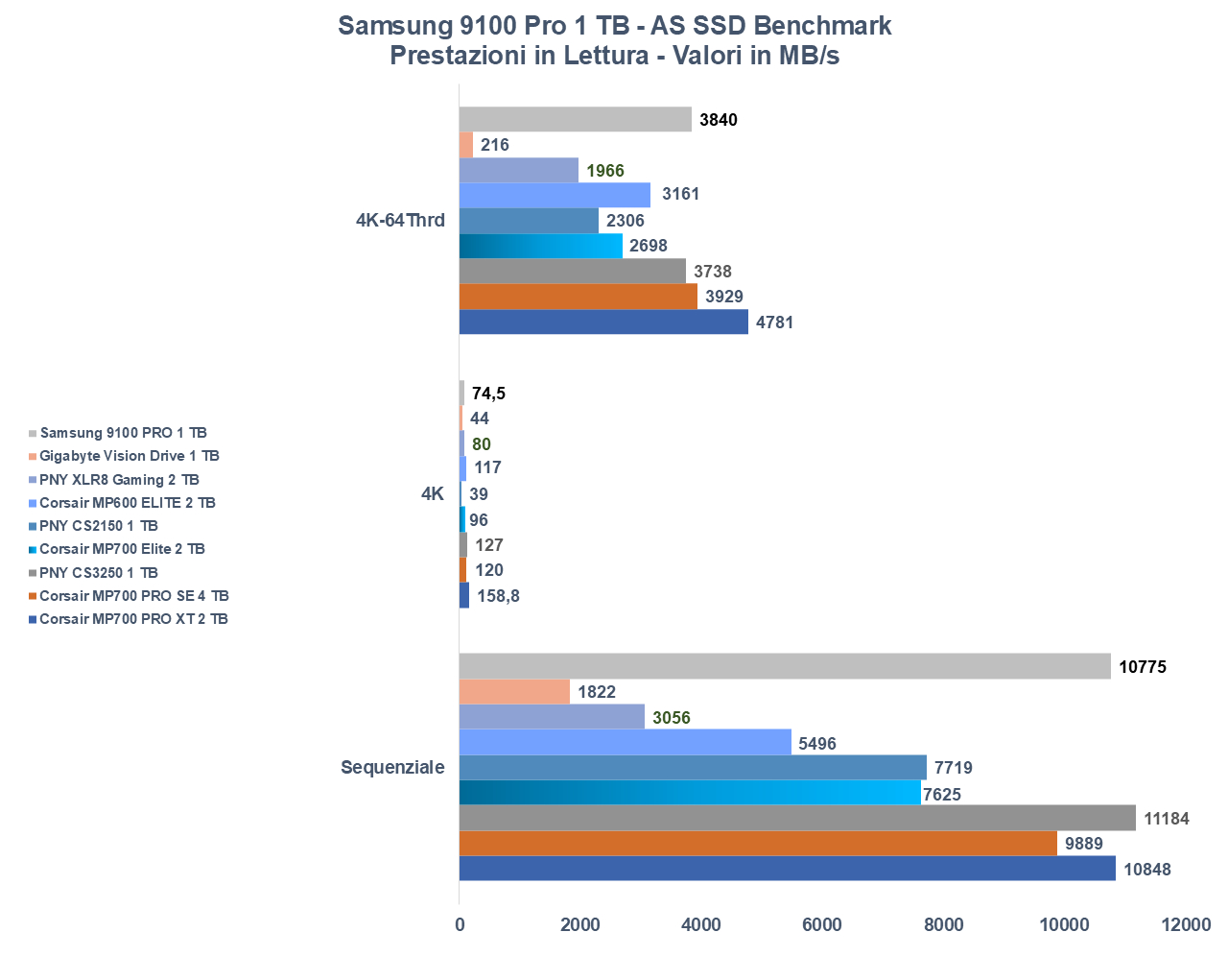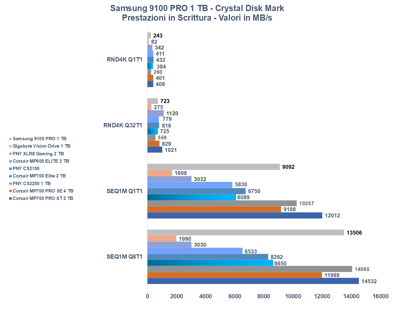 Lo abbiamo già anticipato in apertura, la variante da 1 TB è di sicuro la più lenta tra quelle disponibili, ma alla fine se la confrontiamo con altri top di gamma notiamo che il divario non è molto, in particolare se guardiamo alle versioni da 1 TB.