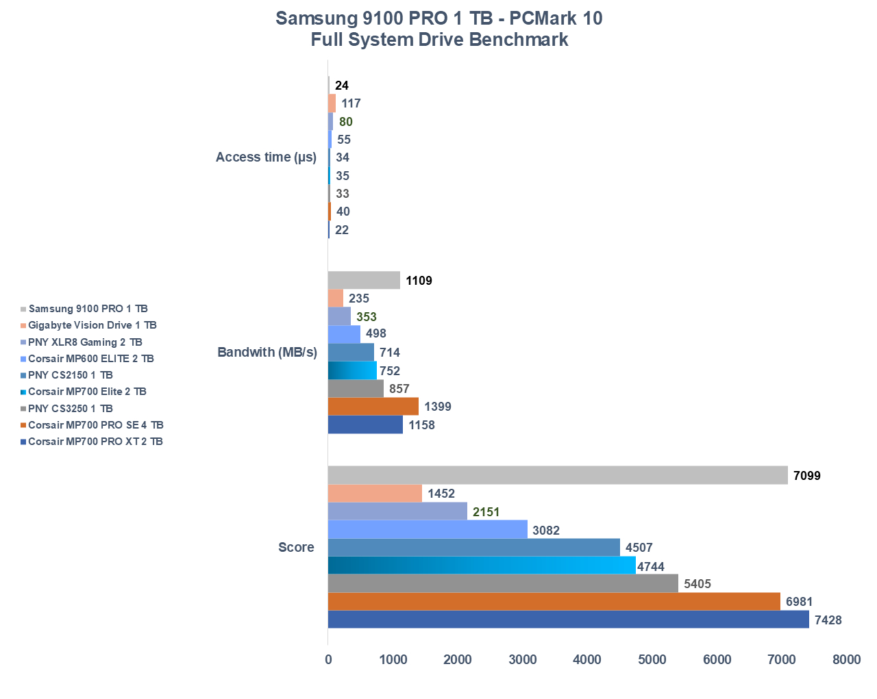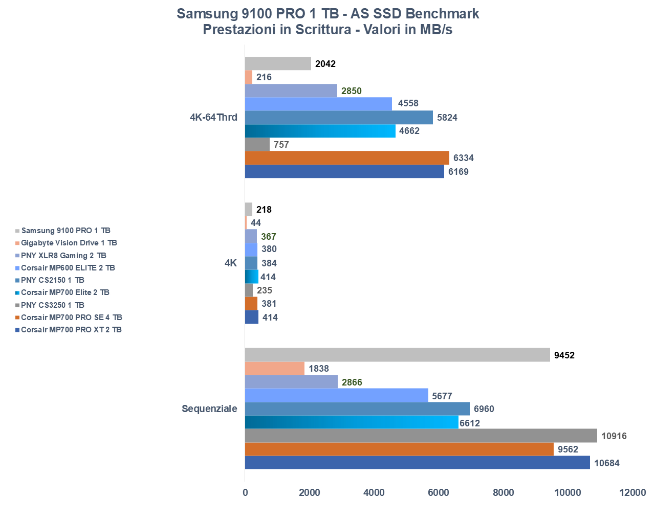 Samsung 9100 PRO 1 TB riesce a essere tra i più performanti a livello di transfer-rate, ottenendo tra l’altro ottimi risultati in materia di tempo di accesso al disco.