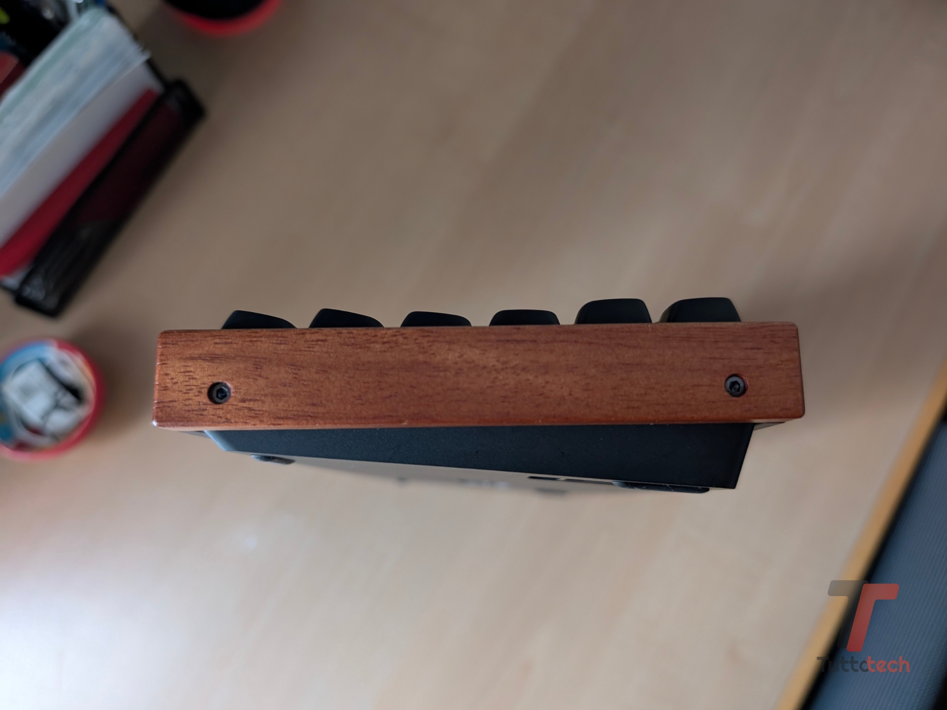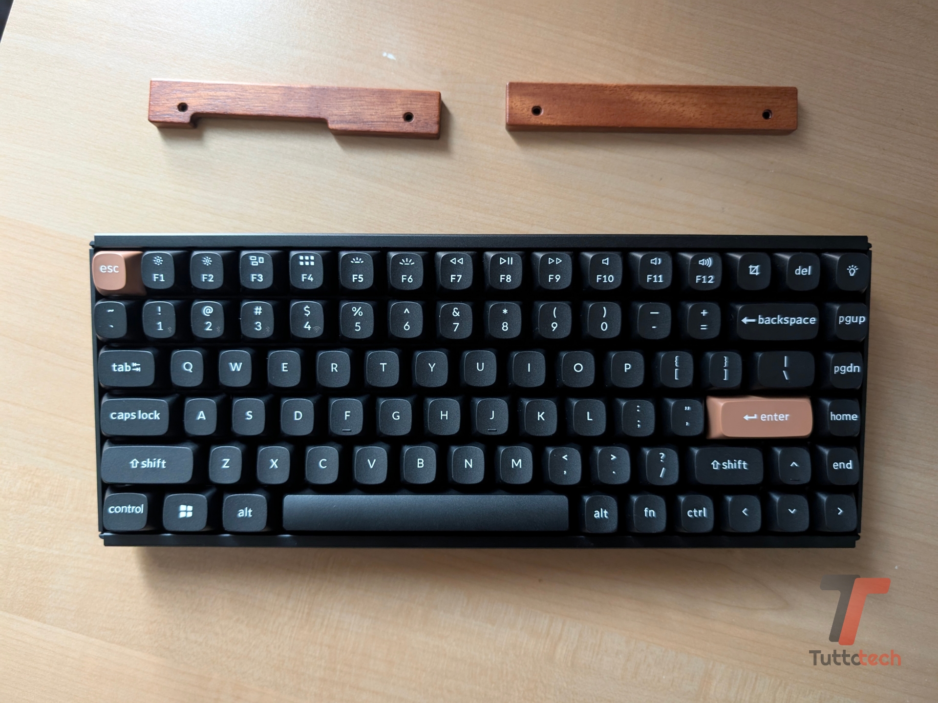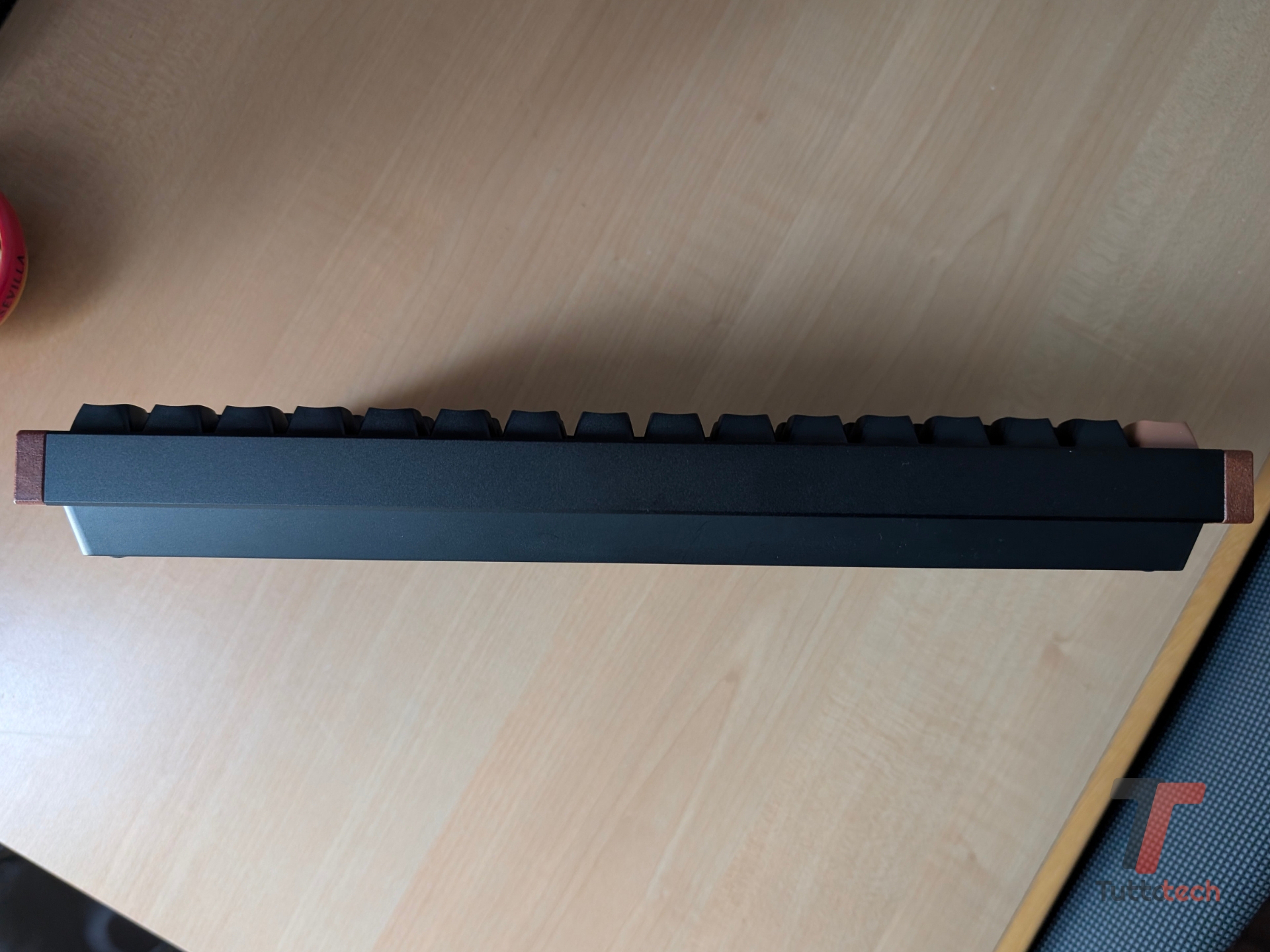 Sul fronte dei materiali, qua siamo sulla fascia alta: Keychron ha optato per una cassa in alluminio con accenti laterali (che caratterizzano questa Special Edition) in legno Rosewood, materiale caldo che aggiunge pregio alla tastiera. Nella versione da noi provata, poi, predomina il nero (alcuni keycap riprendono la colorazione del legno). Esiste anche una versione in bianco.