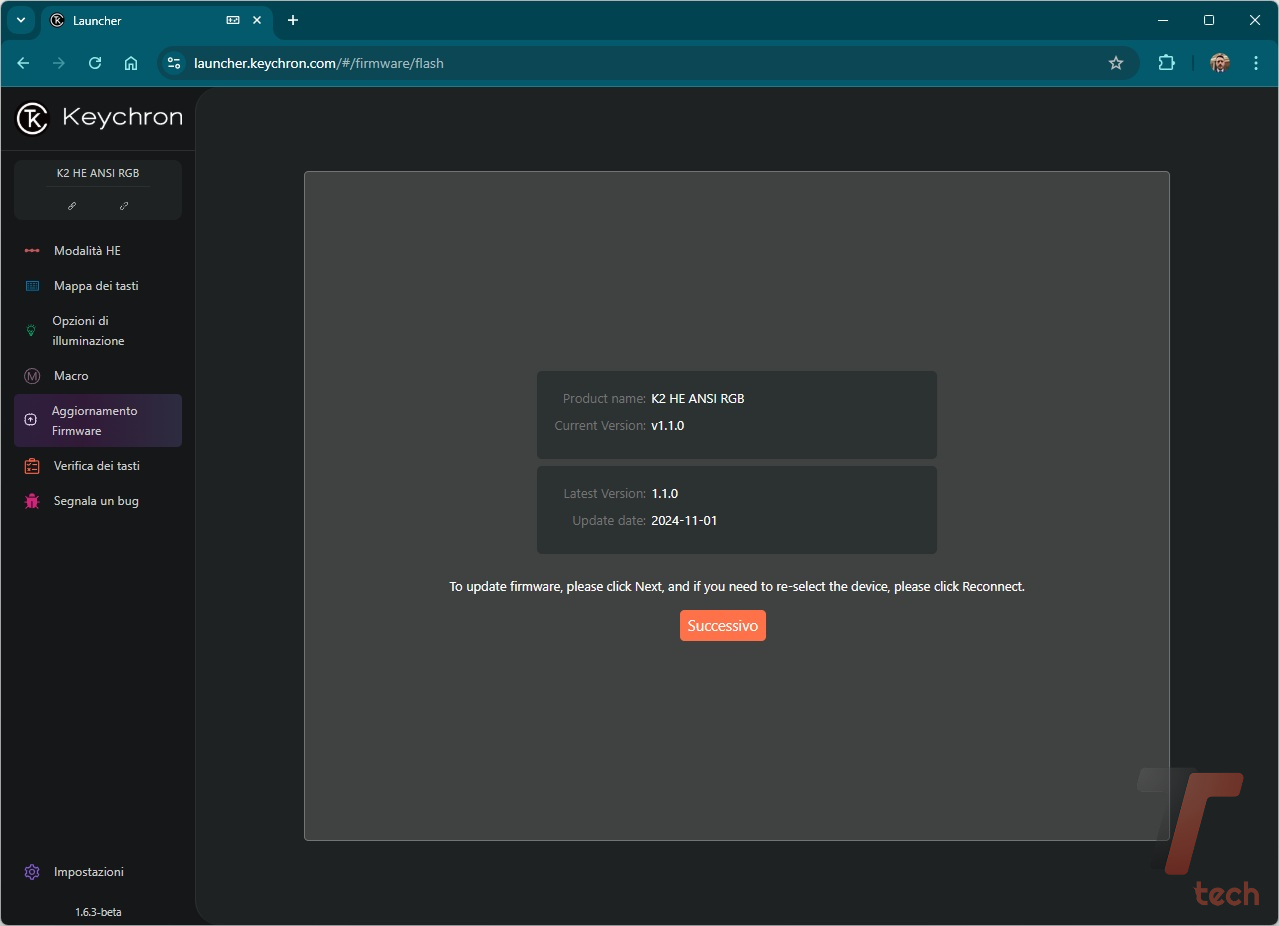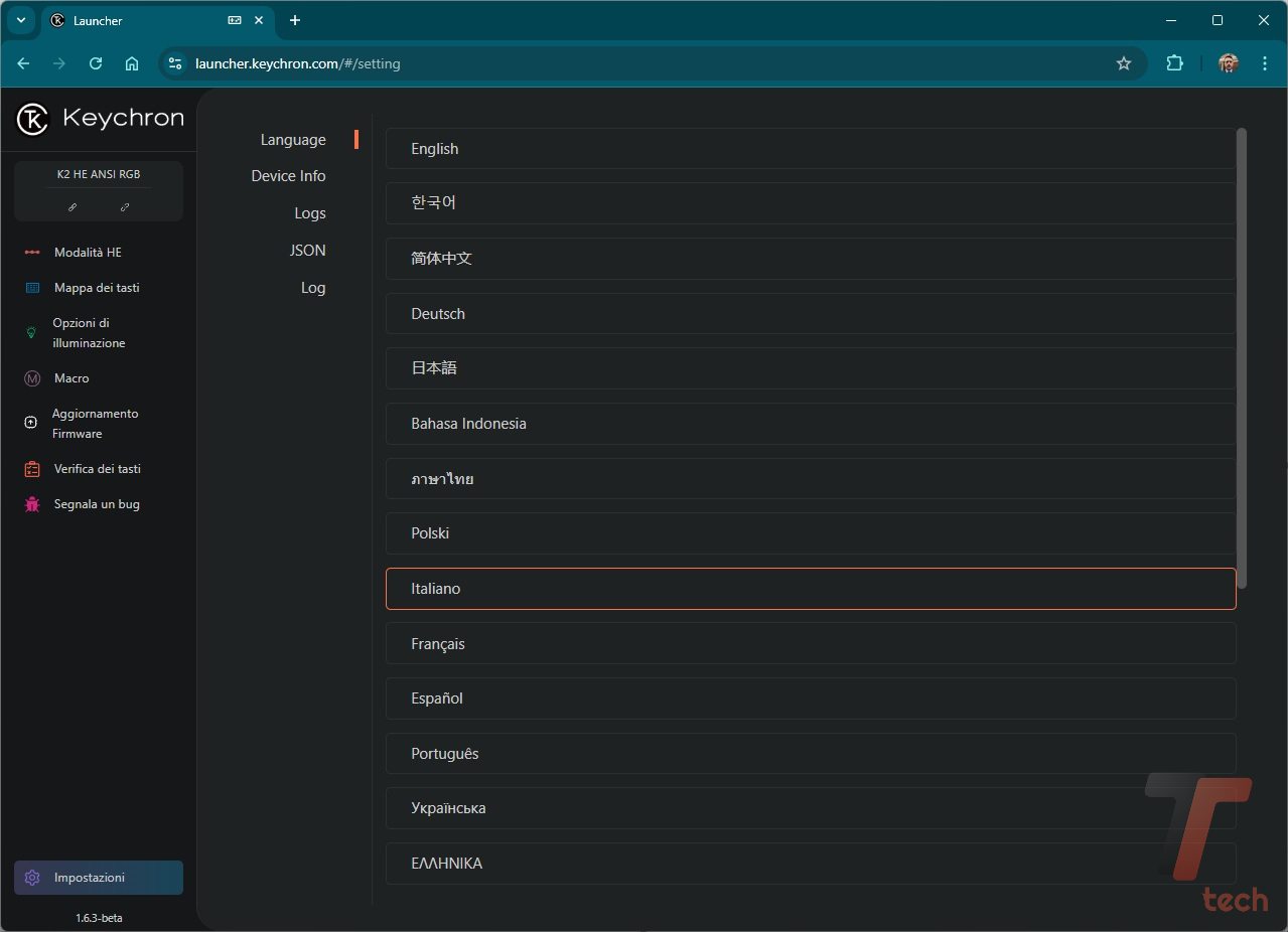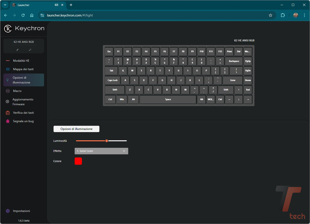 Alla pari delle altre tastiere del produttore cinese, per la personalizzazione dobbiamo rivolgerci alla Web App Keychron Launcher (davvero ben fatta, anche sul fronte delle traduzioni) che permette di programmare macro, rimappare i tasti, assegnare svariate combinazioni ai tasti funzione.