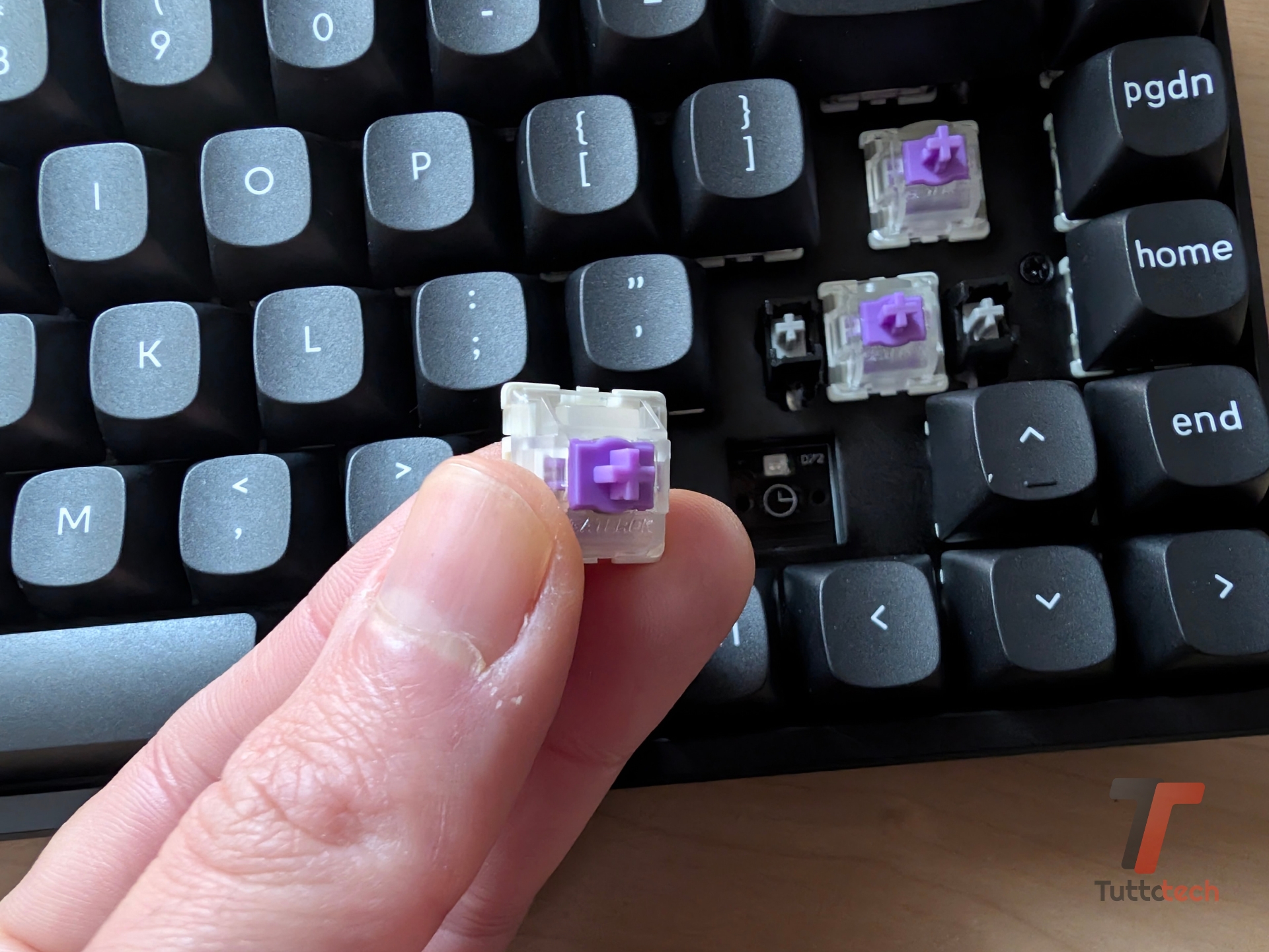Andando oltre, la Keychron K2 HE (nella versione che abbiamo provato) mette a disposizione degli switch custom chiamati Gateron Double-Rail Magnetic Switches: a differenza dei classici switch meccanici, questi particolari switch lineari sfruttano magneti e sensori per rilevare la pressione dei tasti e permettono la regolazione del punto di attuazione con sensibilità di 0,1 mm (da 0,2 a 3,8 mm).