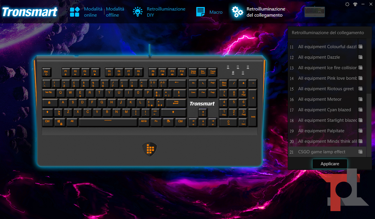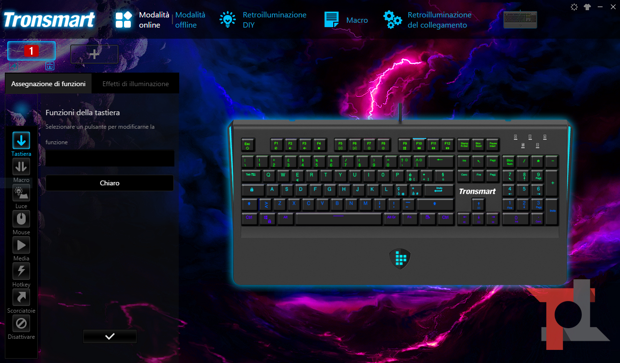 Tramite Tronsmart Radiant l’utente può poi andare a registrare ed assegnare delle macro e delle scorciatoie, modificando anche il comportamento alla pressione tasto per tasto.