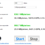 Velocità di lettura e scrittura di una SD Prograde 128 GB (300 MB/s). La porta supporta una velocità massima dichiarata di 104 MB/s.