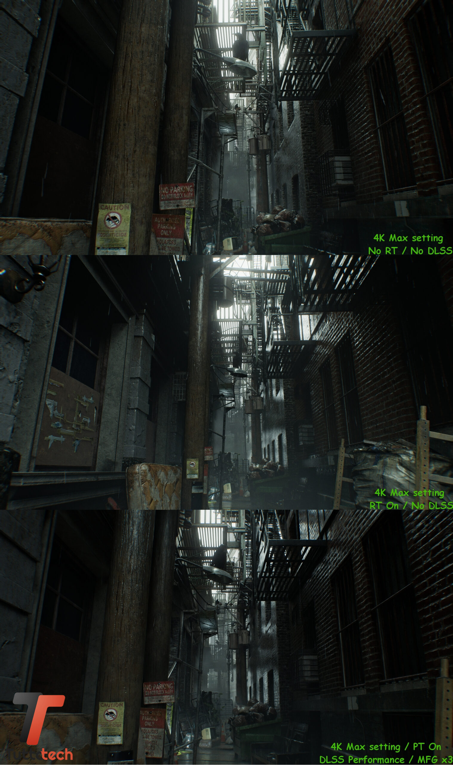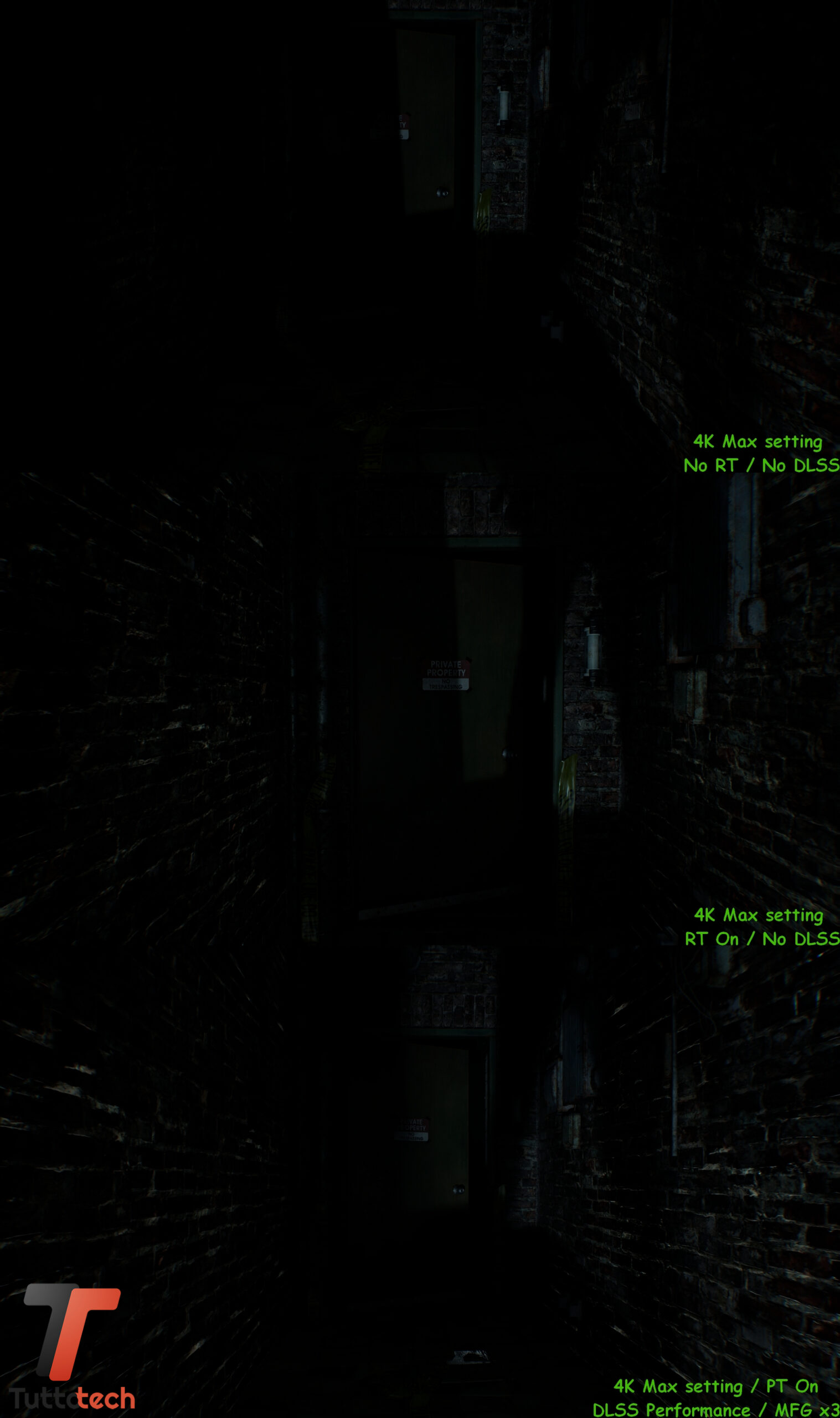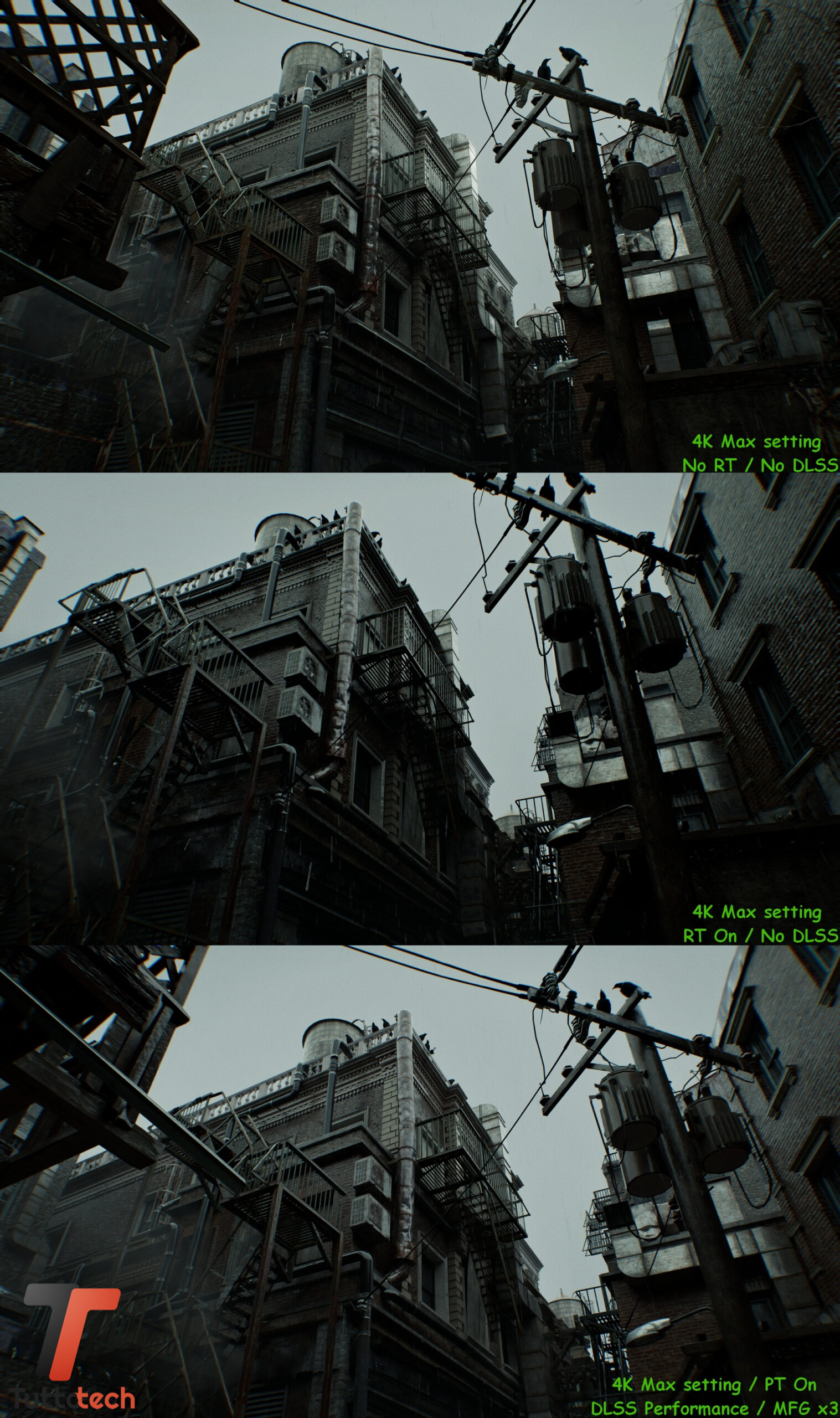 Come anticipato in apertura, non andremo a condividere particolari fasi del gioco visto l’embargo in corso, mentre abbiamo la possibilità di confrontare alcune scene iniziali con tre preset diversi per valutare a occhio le differenze a livello di dettagli tra raster, Ray-Tracing nativo e Path-Tracing / Ray Reconstrction con DLSS e Multi Frame Generation.