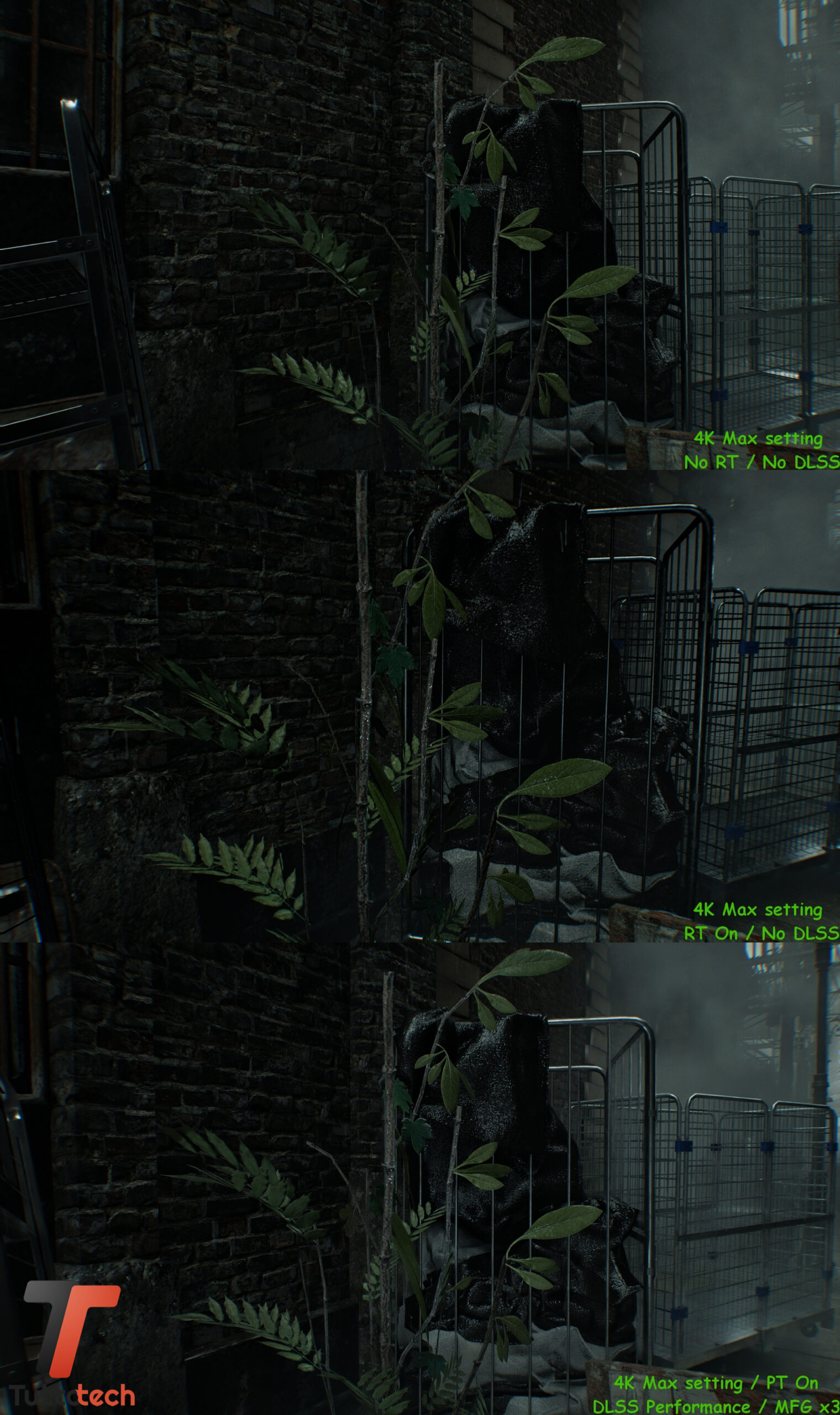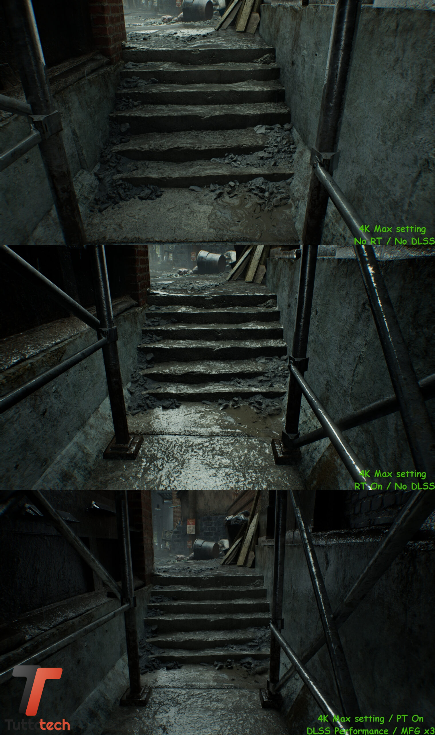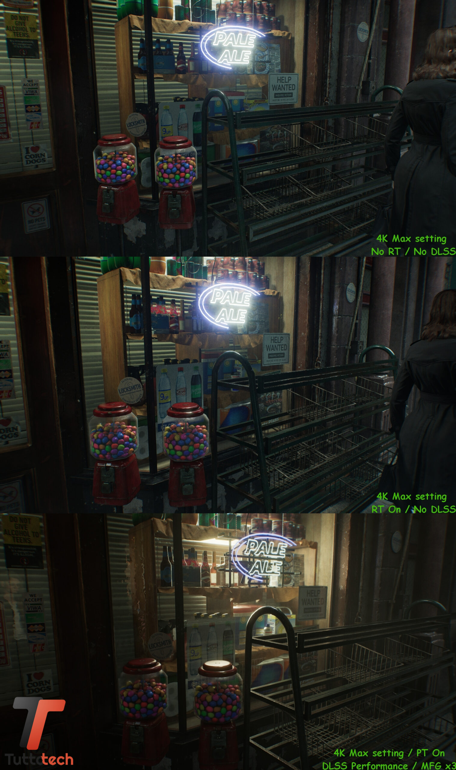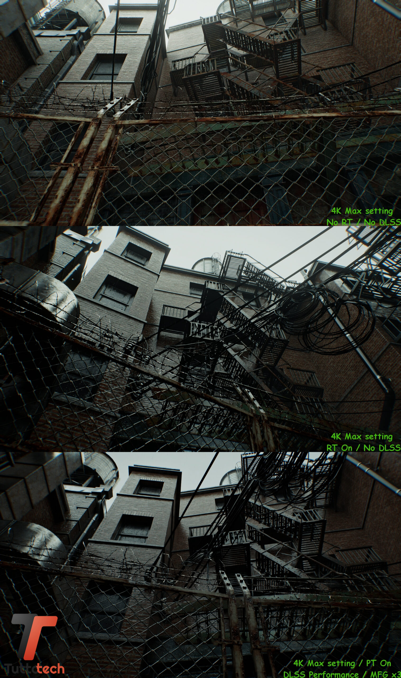 Come anticipato in apertura, non andremo a condividere particolari fasi del gioco visto l’embargo in corso, mentre abbiamo la possibilità di confrontare alcune scene iniziali con tre preset diversi per valutare a occhio le differenze a livello di dettagli tra raster, Ray-Tracing nativo e Path-Tracing / Ray Reconstrction con DLSS e Multi Frame Generation.