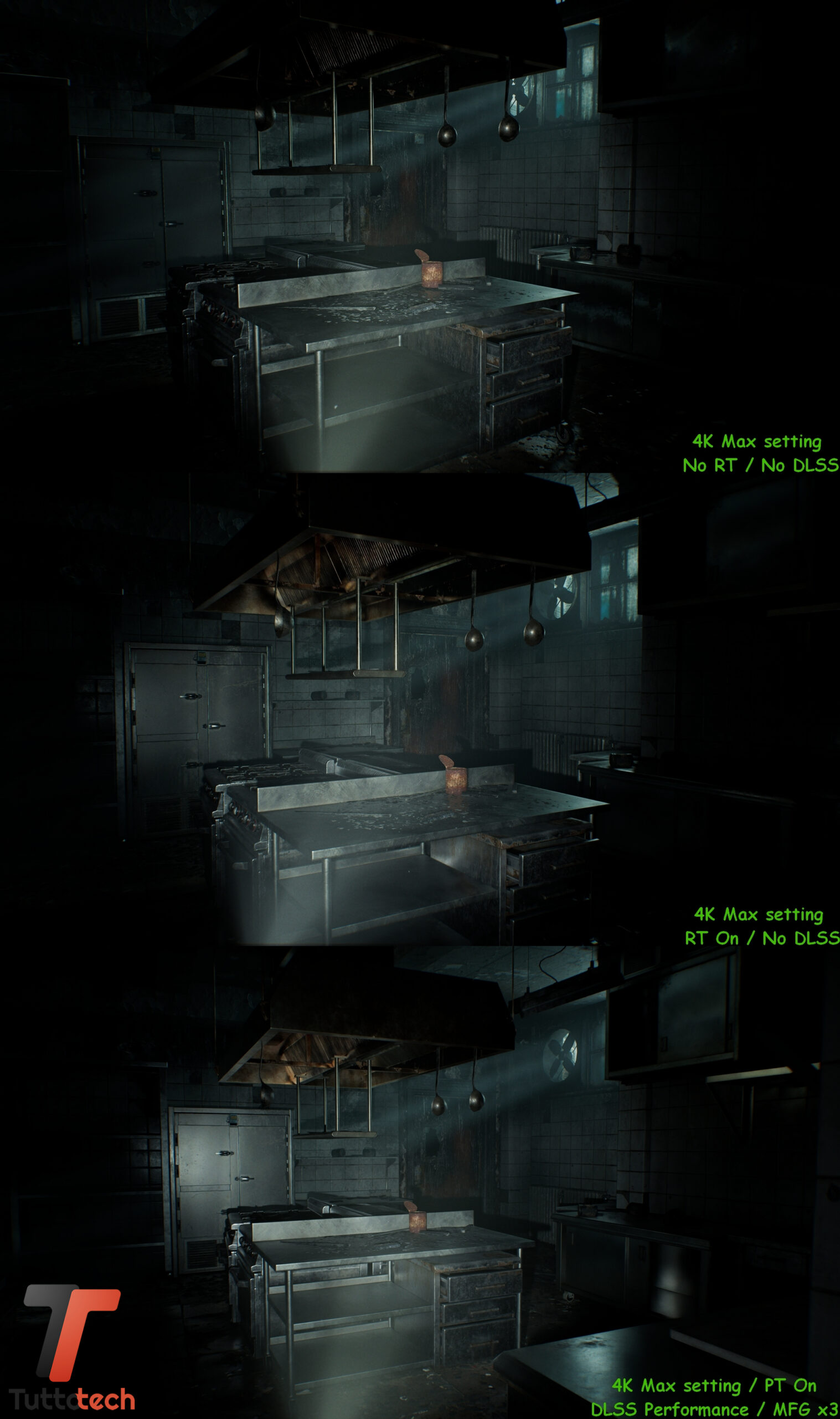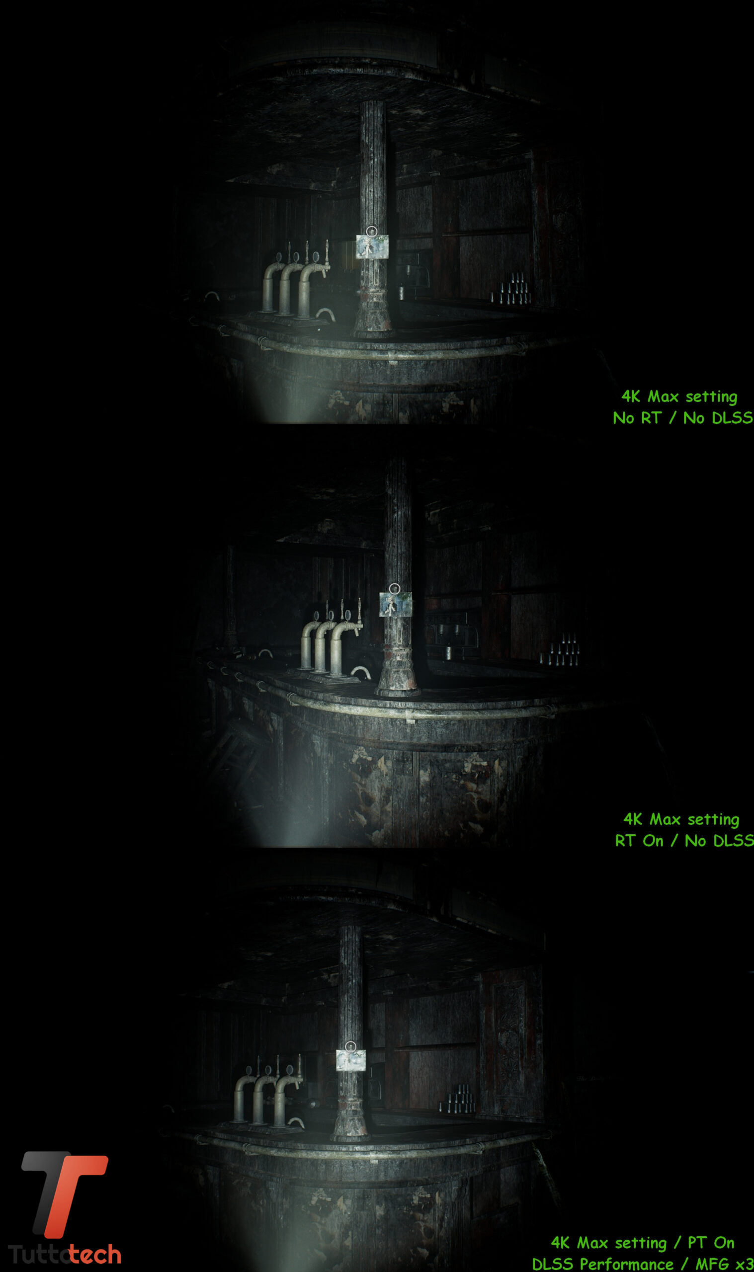 Disabilitare queste tecnologie, a causa di hardware non adeguato o magari per una questione di “approccio” al gaming su PC, possiamo garantirvi che non vi darà gli stessi risultati in termini di esperienza utente e fedeltà visiva. Tuttavia, la saga di Resident Evil ha una tradizione così lunga a cui gli amanti del genere probabilmente non potranno resistere, questo a prescindere dall’hardware di cui dispongono. Proprio per questo motivo, ma anche per fornire dati più completi ai nostri lettori, abbiamo incluso nei nostri test anche delle sessioni senza ray-tracing o DLSS.