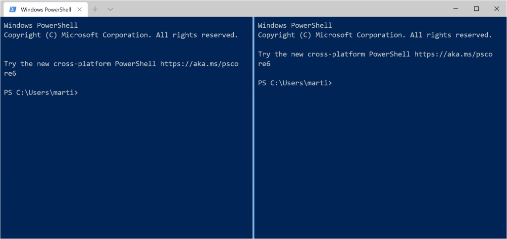 I nuovi pannelli di Windows Terminal funzionano come se fossero dei tab di Chrome, ma abbiamo la possibilità di visualizzarli tutto a schermo contemporaneamente ed anche gestirli da tastiera tramite dei comandi rapidi per il controllo, richiamabili con una combinazione di tasti: