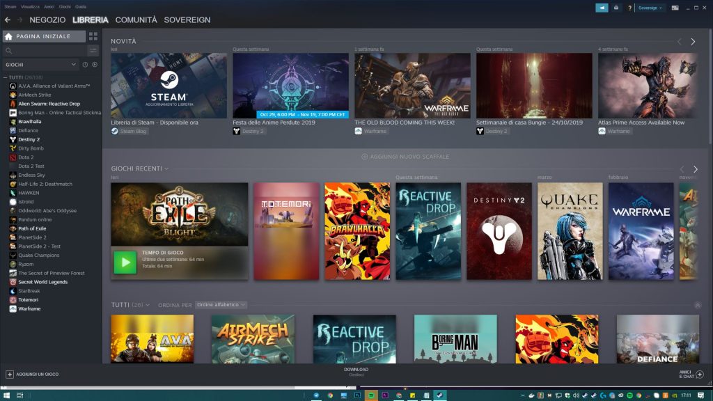 Tra le novità possiamo trovare news che riguardano i giochi oppure comunicazioni da parte di Steam, in questo caso trovate la notizia riguardante l’update grafico della Libreria in alto a sinistra.