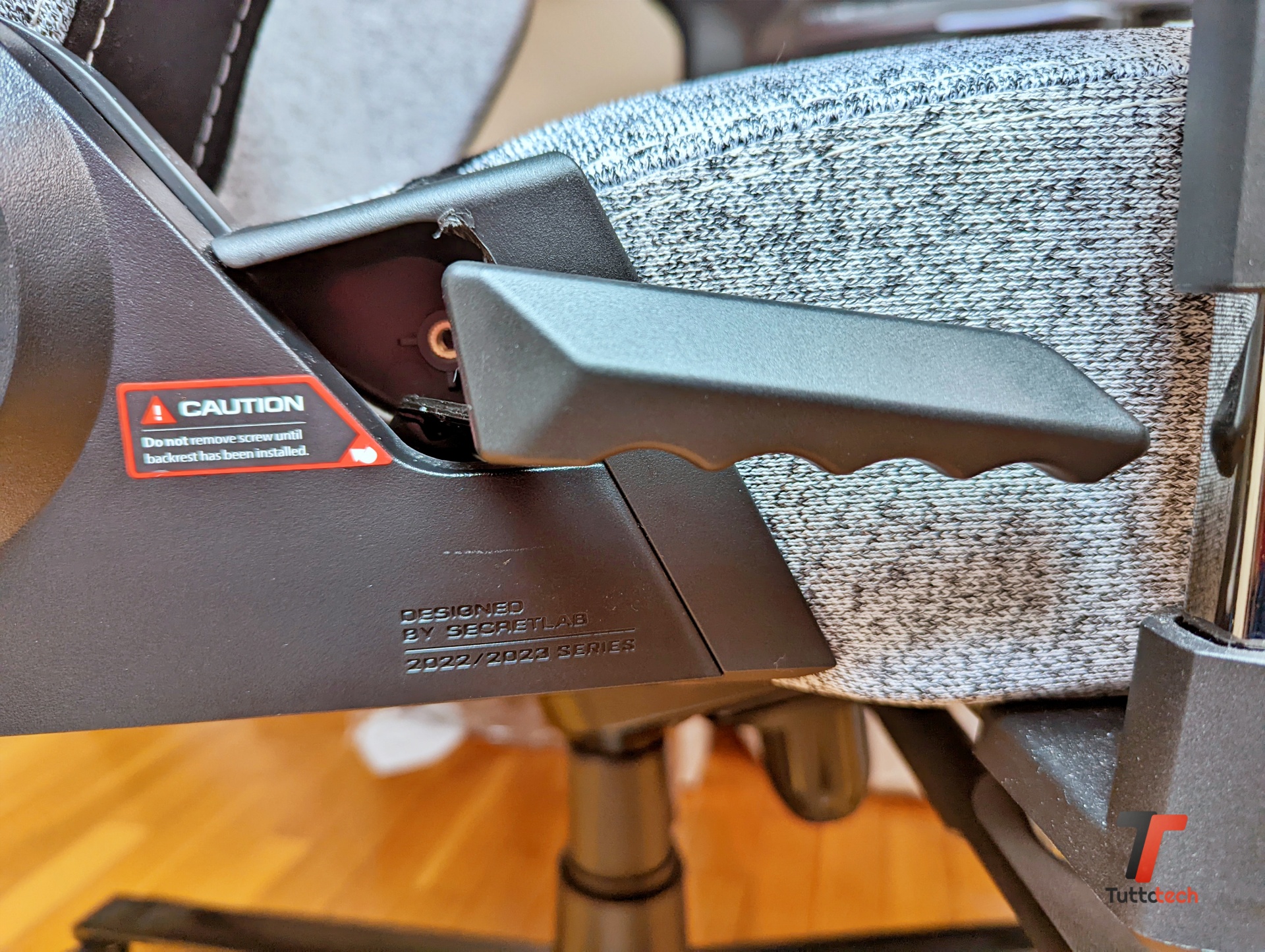 Anche la regolazione dell’inclinazione dello schienale è semplice, con una levetta posta sul lato destro che richiede una leggera pressione per entrare in funzione. È così possibile inclinare lo schienale fino a 165 gradi, per godersi qualche momento di relax, con la seduta che si inclina verso la parte posteriore per rendere più comoda la posizione. Lo schienale può raggiungere anche una inclinazione inferiore ai 90 gradi, anche se non si inserisce il blocco, una scelta comoda per ridurre gli ingombri quando la sedia non è in uso.