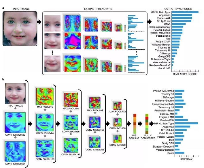 In uno studio pubblicato questo mese sulla rivista Nature Medicine, la società statunitense FDNA ha mostrato nuovi test del suo software, DeepGestalt, basato proprio su un’intelligenza artificiale. Proprio come un normale software di riconoscimento facciale, la società ha addestrato gli algoritmi analizzando un set immenso di volti umani. FDNA ha raccolto più di 17.000 immagini che coprivano 200 sindromi diverse usando un’app per smartphone sviluppata da Face2Gene.