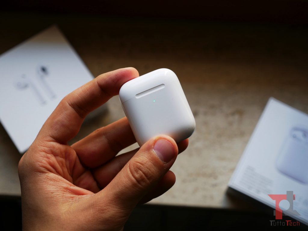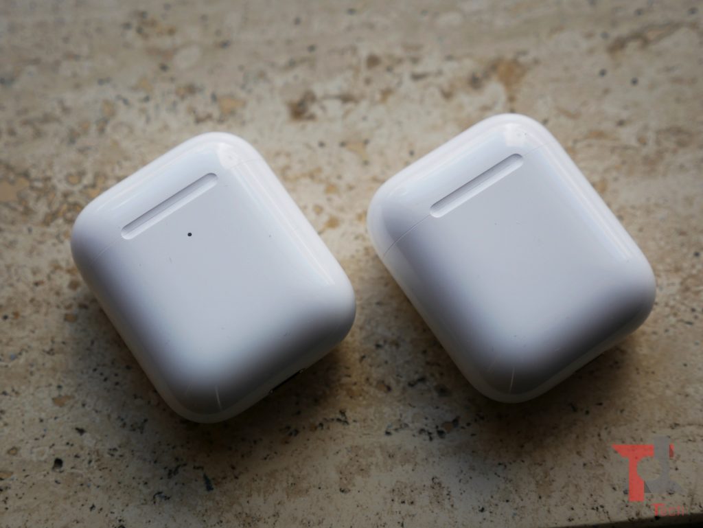 Anche il case esteticamente è quasi identico alla precedente generazione: si distingue solo per il LED di stato che è stato spostato sulla parte frontale, per la diversa posizione dell’unico pulsante fisico e per la cerniera metallizzata che non è più lucida ma opaca. Gli auricolari invece sono semplicemente identici ai precedenti: non c’è modo di distinguerli dai vecchi e quindi c’è il rischio in caso di acquisti sull’usato o sul ricondizionato.