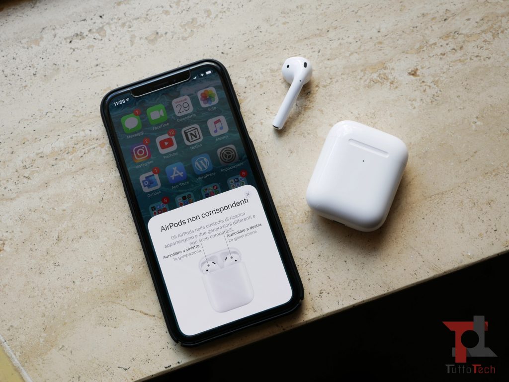Inoltre non potrete mixare gli auricolari: se inserite all’interno del case un auricolare 1st gen ed un altro 2nd gen, il case vi avviserà che avete gli auricolari non corrispondenti. Se li indossate invece, il 2nd gen funzionerà avendo la priorità, mentre il 1st gen no.