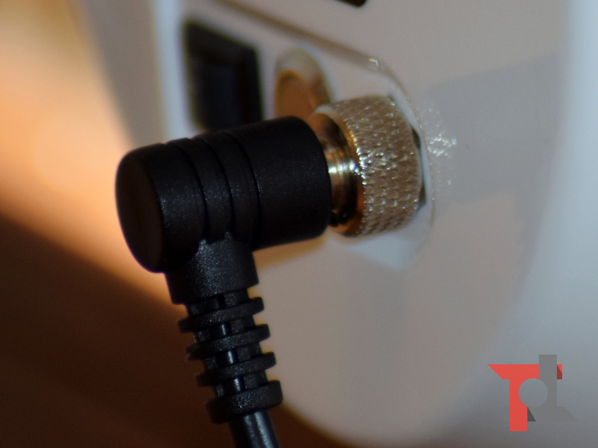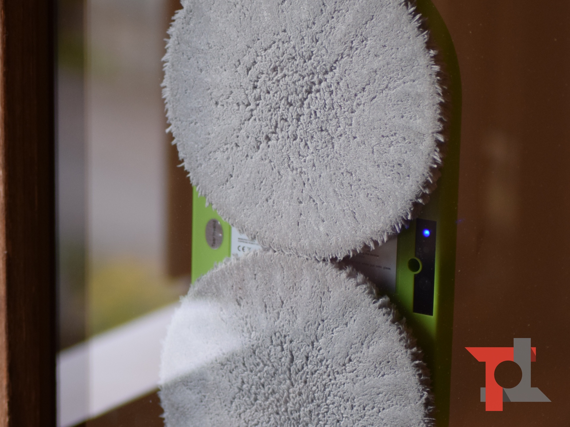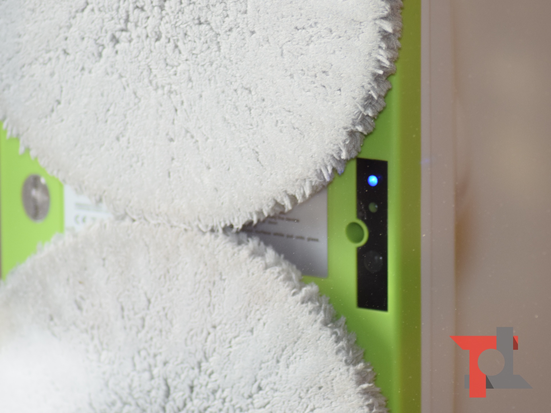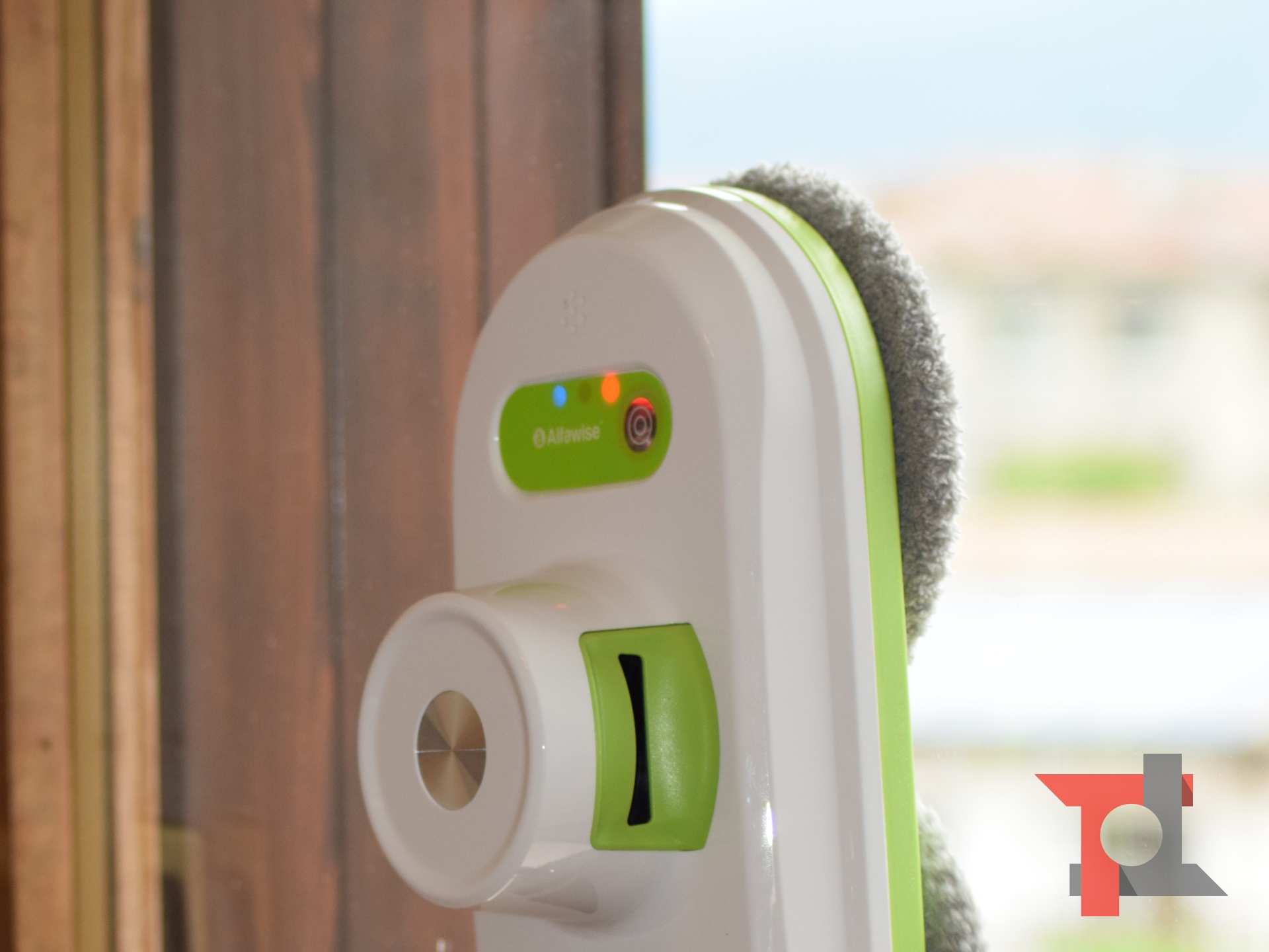 Dopo aver fissato la corda di sicurezza, dovrete collegare il cavo di alimentazione, che è tenuto in posizione da un sistema a vite che ne impedisce lo sgancio. È sufficiente premere il pulsante di accensione e appoggiare il robot al vetro da pulire per vederlo rimanere appeso senza problemi. Ora potrete utilizzare il telecomando o, più semplicemente, premere il pulsante argentato a fianco del tasto di alimentazione.