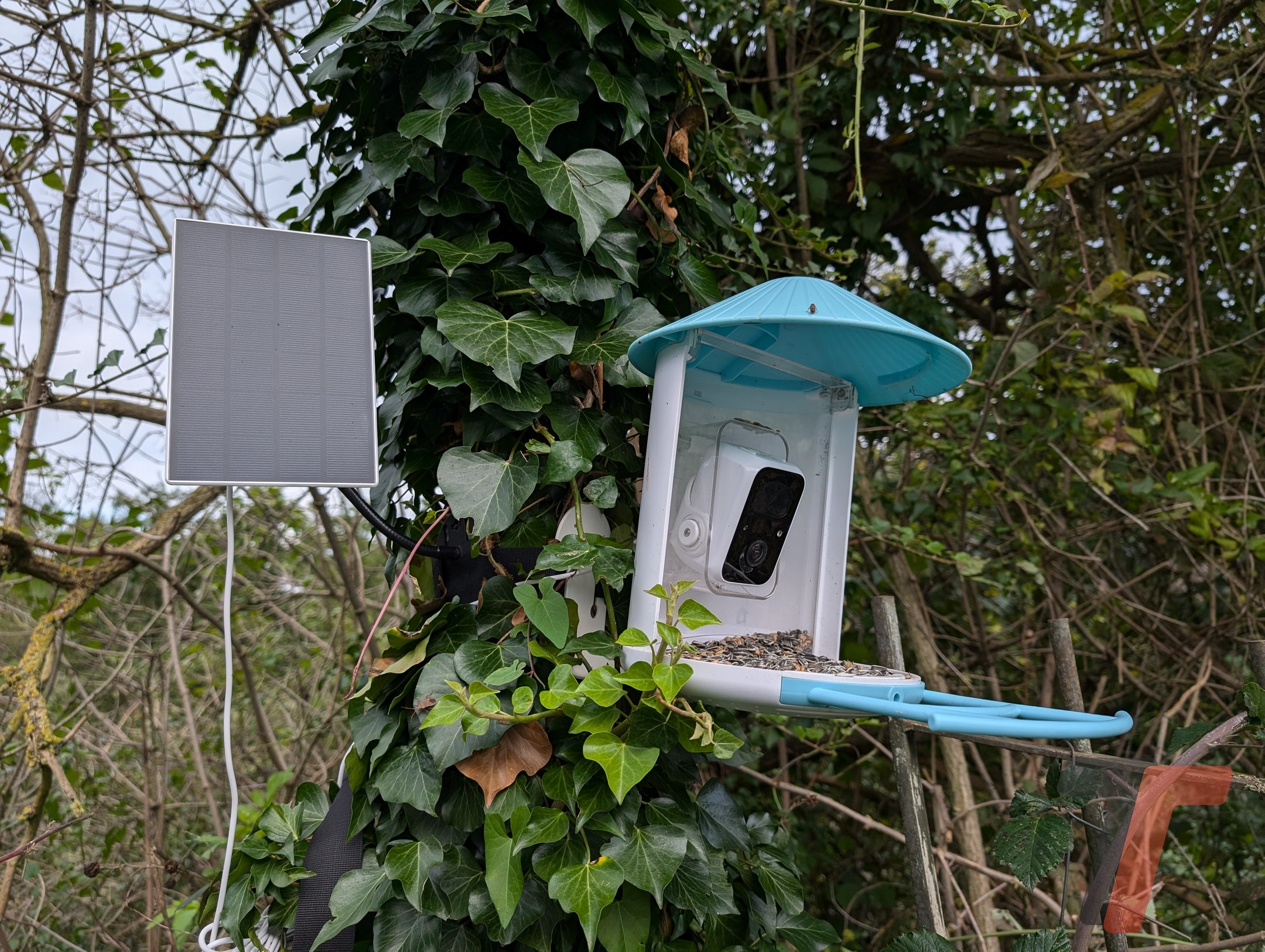 Proprio di fronte al trespolo è collocata la videocamera, un modulo con risoluzione FullHD corredato da sensore di movimento IR passivo, microfono, speaker, LED per illuminare le vicinanze e LED IR per la visione notturna. La videocamera si può regolare per scegliere l’inquadratura desiderata, il fuoco invece è fisso ed è calibrato a pochi cm di distanza, difficilmente quindi potreste sfruttarla per inquadrare soggetti lontani. Non manca poi uno slot per microSD (16-128 GB, non inclusa) e una porta Type-C che vi servirà per ricaricare la batteria da 5000 mAh oppure per collegare il piccolo pannello solare che viene venduto separatamente. Per quanto riguarda la connettività troviamo il WiFi 2,4 Ghz.
