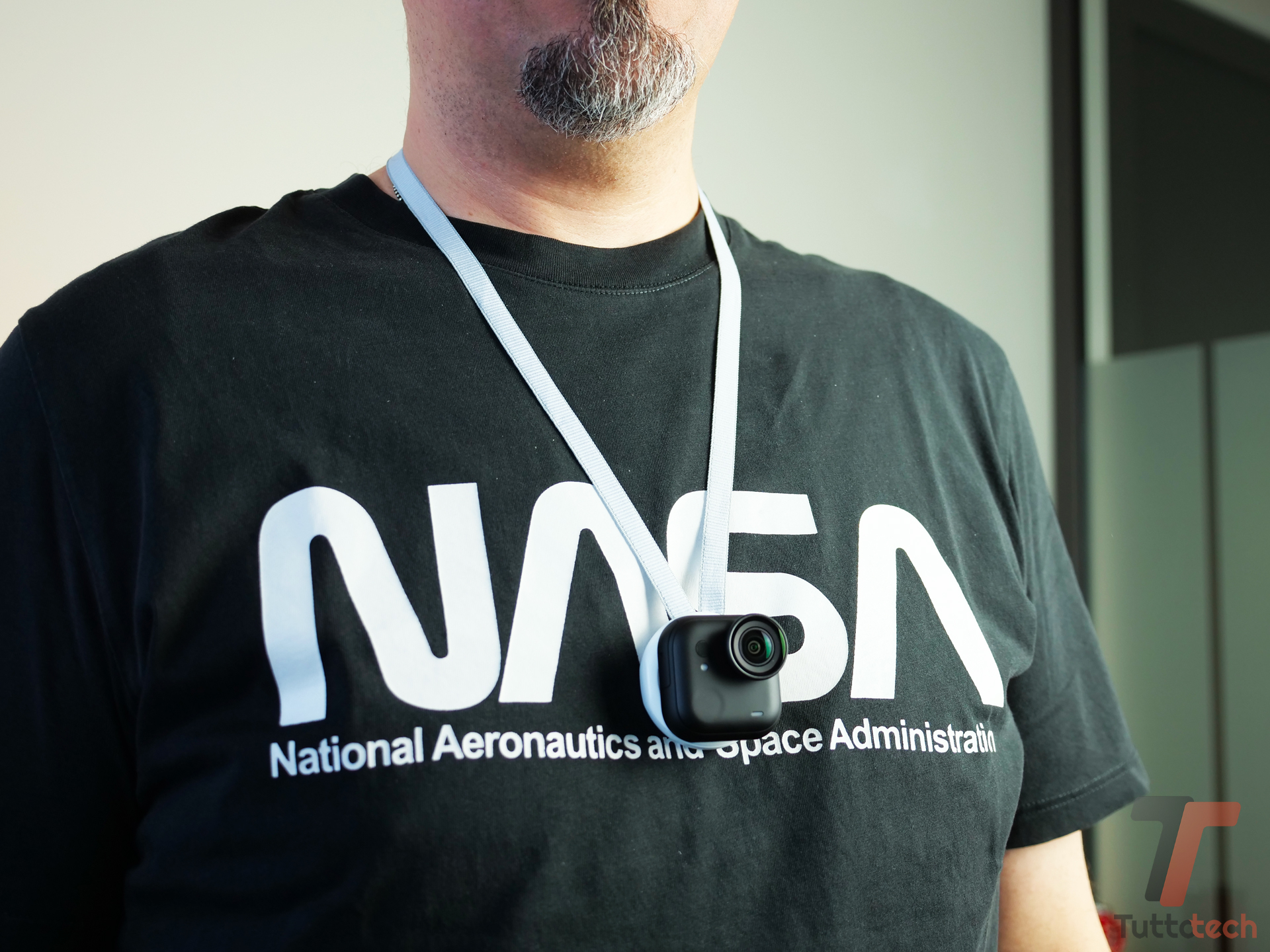 Il dato tecnico impressionante è il peso di Insta360 GO Ultra: soli 53g per la camera standalone (che misura appena 46 x 45.7 x 18.3mm), che raddoppia nel valore pratico durante attività come corsa e ciclismo, dove anche pochi grammi possono fare la differenza. La forma quadrata, che cambia decisamente rispetto a quella di forma allungata della GO 3S dello scorso anno, minimalista ed esteticamente gradevole, risulta assolutamente versatile. Si può indossare discretamente sul petto grazie al ciondolo magnetico, oppure fissare su cappelli, caschi, manubri o qualunque superficie metallica.