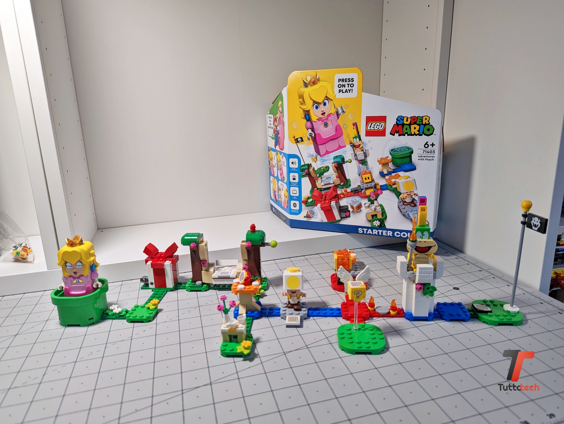 Anche lo starter pack dedicato a Peach è privo di istruzioni cartacee, una scelta senza dubbio rispettabile dal punto di vista della sostenibilità. Questo però comporta la necessità di installare su uno smartphone o un tablet l’applicazione dedicata alla linea di prodotti LEGO Super Mario anche per poter assemblare i vari elementi, costringendo i più piccoli a ricorrere all’aiuto dei genitori.