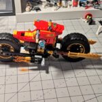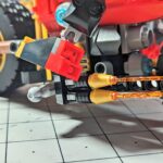 Il secondo sacchetto invece permette di costruire la moto, caratterizzata da due enormi ruote e da una serie di armi che possono comunque essere sganciate e utilizzate per aumentare il divertimento. Anche in questo caso i progettisti LEGO sono stati particolarmente attenti ai dettagli, posizionando sulla sella un elemento in cui incastrare il mech, per una maggiore stabilità quando viene montato sulla moto.